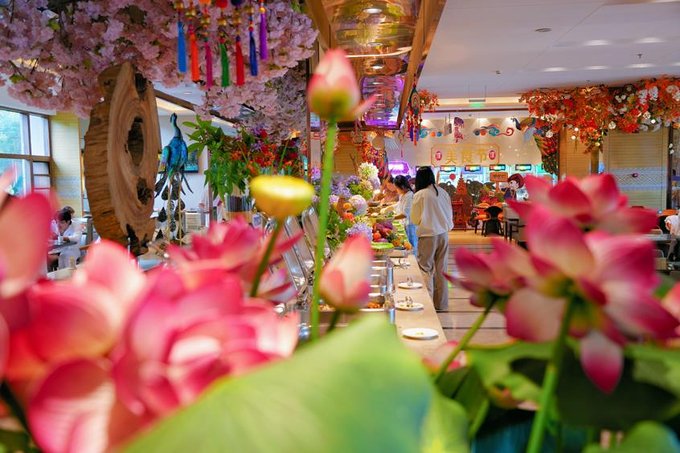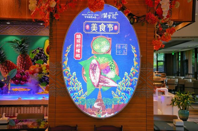 除了温泉,古滇温泉山庄还注重文化的传承与体验。游客可以在这里感受云南的民族风情,品尝地道的云南美食(在主楼二楼的自助餐厅)。