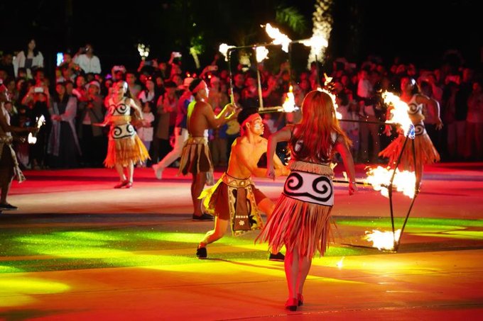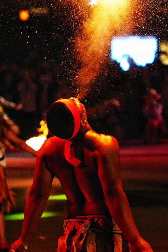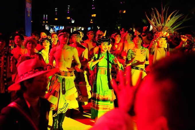 天黑后,在孔雀广场还有万人篝火狂欢活动,火舞演员们会在孔雀广场上进行火舞以及喷火表演,表演结束后演员们和游客一起,围绕在孔雀进行集体跳舞,超级热闹。