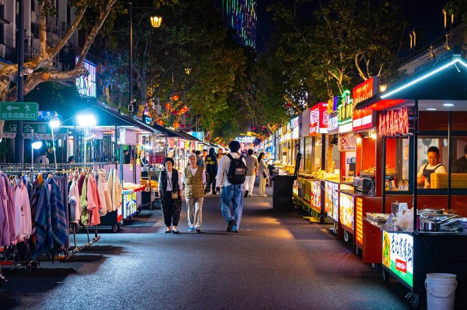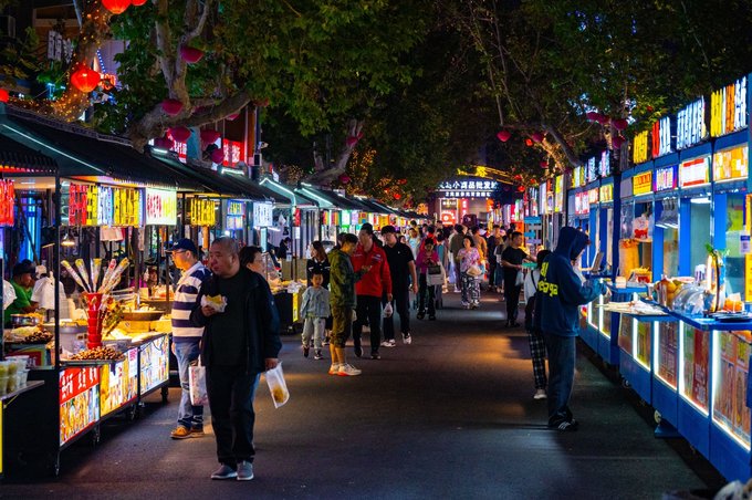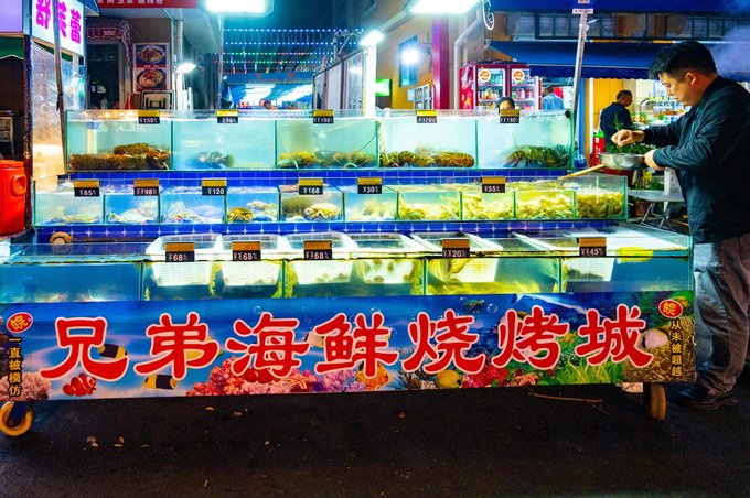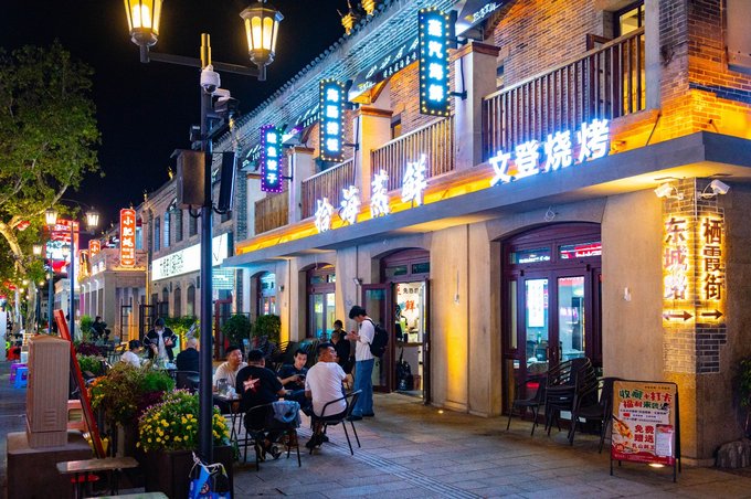 📍夜市推荐:东城路。这条路上的夜市摊点整齐划一,沿街道两旁一字排开。夜市里可以吃到各种经典小吃,更多的还是本地特色。