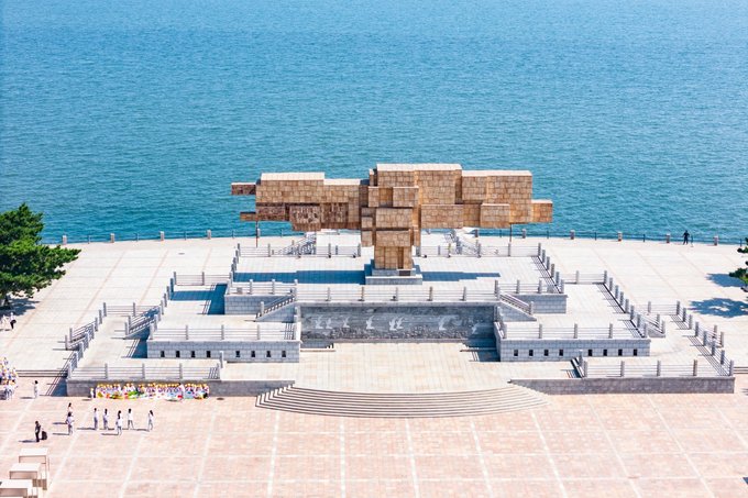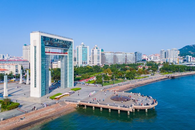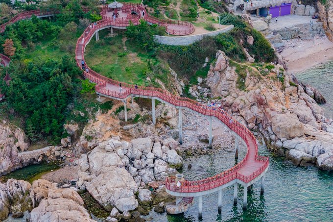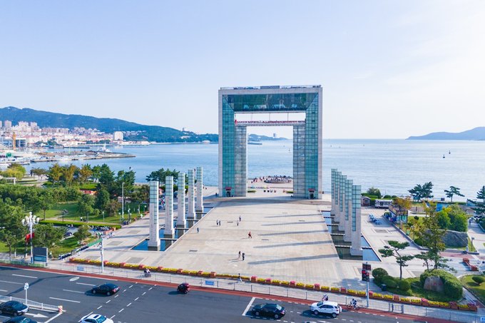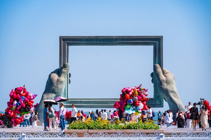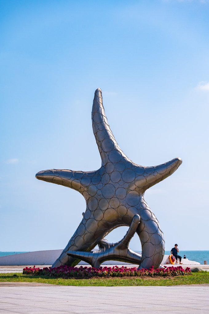 📍威海公园,是国内城市最大的海滨公园之一,连接了悦海公园。这里的“大相框”等各种雕塑是威海的标志性景观。