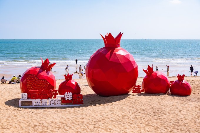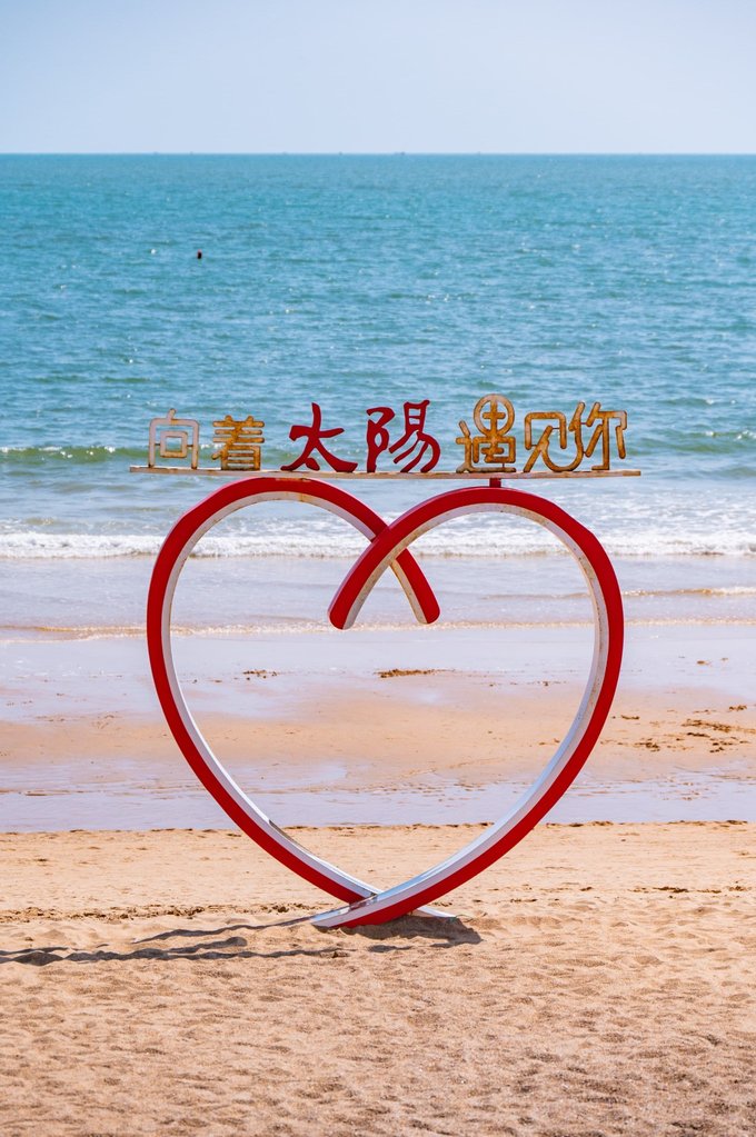下午又来到阳光海岸景区,这里相对于万平口,游客更少一些,商店及各种场所的建筑像一个贝壳群,也是日照玩水的绝佳之处。如果你想找到好看的装置拍拍照片推荐去万平口,如果你只是想好好的在海边玩水,或许阳光海岸是更优的选择。
