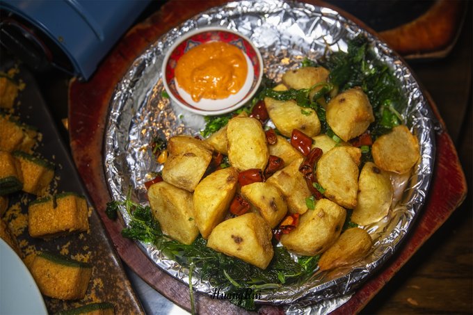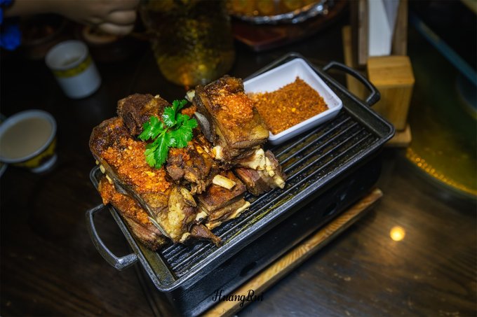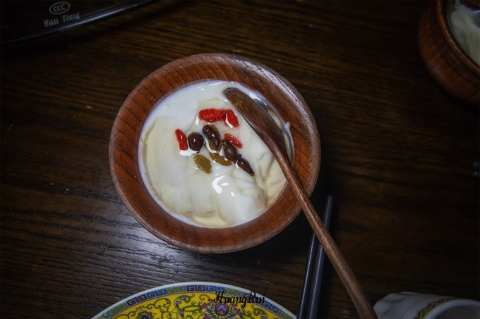 晚上:敏珠拉姆藏餐香格里拉厨房与独克宗古城 晚餐我们选择了敏珠拉姆藏餐香格里拉厨房。这家餐厅的门头非常有特色,充满了藏族风情。一进门就能闻到馥郁的檀香味,店内摆设着各种藏风陈设,让人仿佛置身于雪域高原的布达拉宫。这里的菜品非常有藏族特色,健康养生。我们品尝了腊排骨火锅,精心选用沐浴香格里拉阳光的土猪最好的部位做成腊排骨,腊排骨的香味全部渗入汤里,汤色奶白透着鲜,美味无比。然后让我印象最为深刻的还是那一碗酸奶,因为当地优质的奶源,加上手工制作的原因,他家的酸奶真的是又营养,又美味。