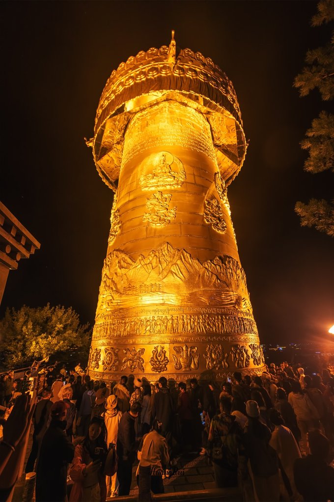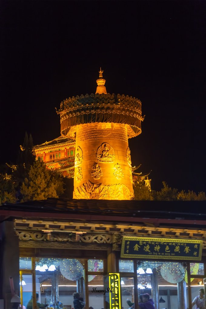 古城内,我们见到了世界上最大的转经筒,需要多人合力才能转动。这里也是整个独克宗古城中人气最旺的地方。特别是夜幕降临,华灯初上,整个独克宗被浪漫气息笼罩。转经筒也亮起了自己的金色光芒,这时候去到这里的人会排成长队,有序的移步到经筒下转上几圈,为自己和家人祈福。