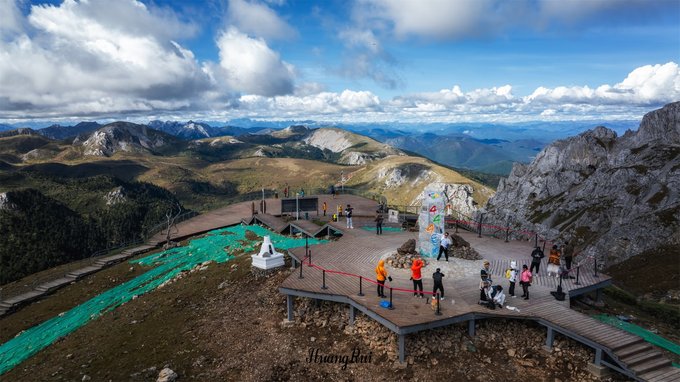 我们乘坐缆车直达山顶,沿途的风景令人陶醉。到达山顶后,我们俯瞰四周,梅里雪山、玉龙雪山等几乎所有的雪山景色尽收眼底。强烈建议大家一定要到海拔4449这个石碑这里拍照打卡,这样才能证明你征服过石卡雪山。