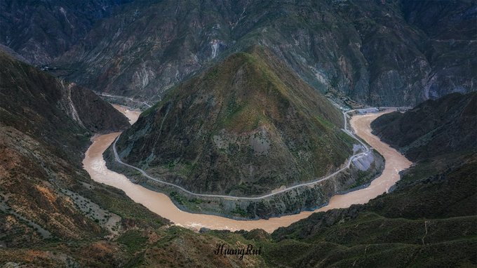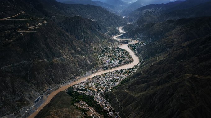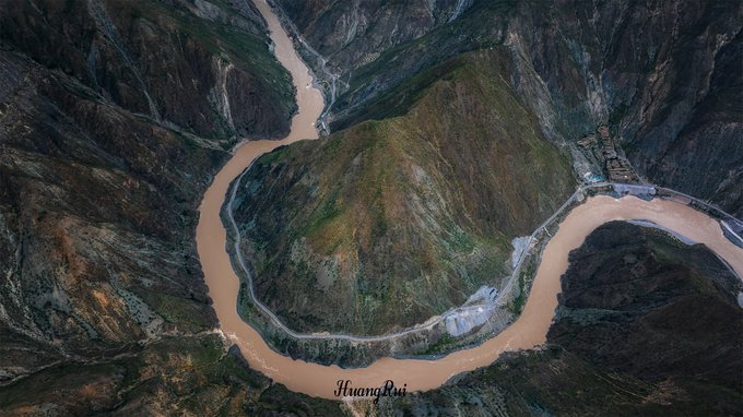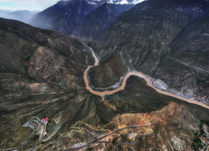 站在观景台上,我们俯瞰金沙江大湾,江水在峡谷中蜿蜒流淌,气势磅礴。这里的景色壮丽而神秘,仿佛是大自然的一幅杰作。