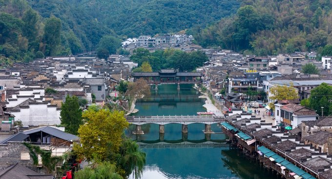 这里自古人才辈出,赣派古建筑飞檐斗拱,砖墙黛瓦,以精致入微的设计著称。 千米有余的明清商业街,保留着往昔极致繁华的痕迹,时间在这里仿佛凝固成一串音符。 行走在瑶里,青山隐隐,云雾缭绕,瑶河潺潺,各式小桥添彩其间,勾勒出一幅幅迷人的山水画卷。
