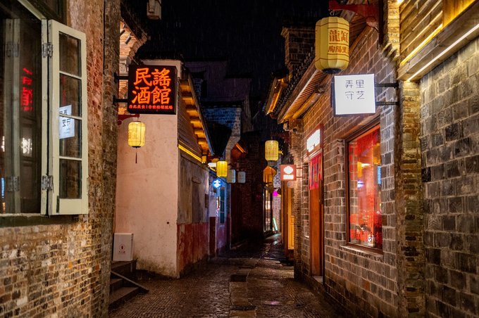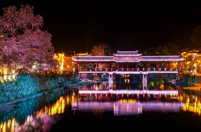 日间,瑶里古镇洋溢着清新与诗意;灯火阑珊时,变得瑰丽神秘。 漫步廊桥,穿行长巷,恍若时空交错,忘却今昔何年。