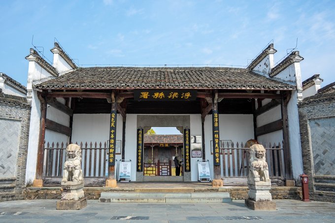 浮梁县的历史可以追溯到春秋战国时期,县治曾经设于景德镇,浮梁古县衙则在浮梁镇旧城村,是江南唯一保存完整的封建时代县级衙署,有“江南第一衙”之称,坐北朝南呈长方形状布局,现存有照壁、头门、仪门、大堂、二堂、三堂等建筑,后面还有个花园,非常气派。