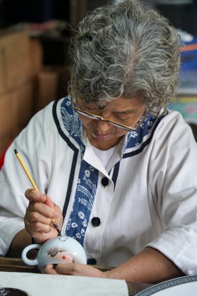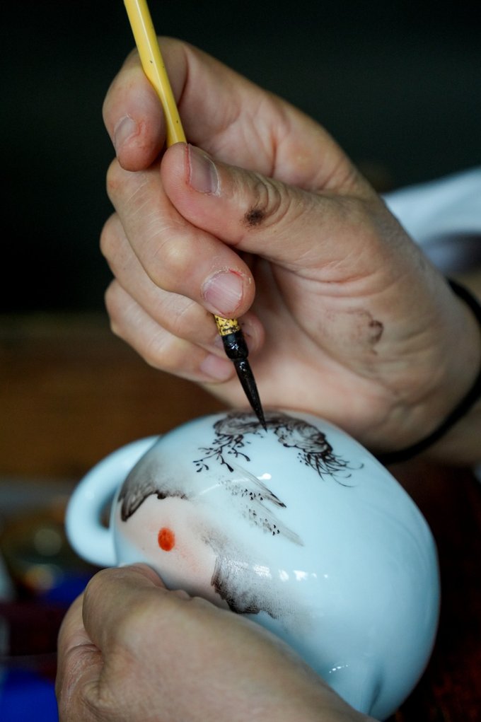 进入古窑,一般先到工坊,这里有很多非物质文化遗产传承人,他(她)们日复一日潜心创作,延续景德镇的陶艺辉煌。