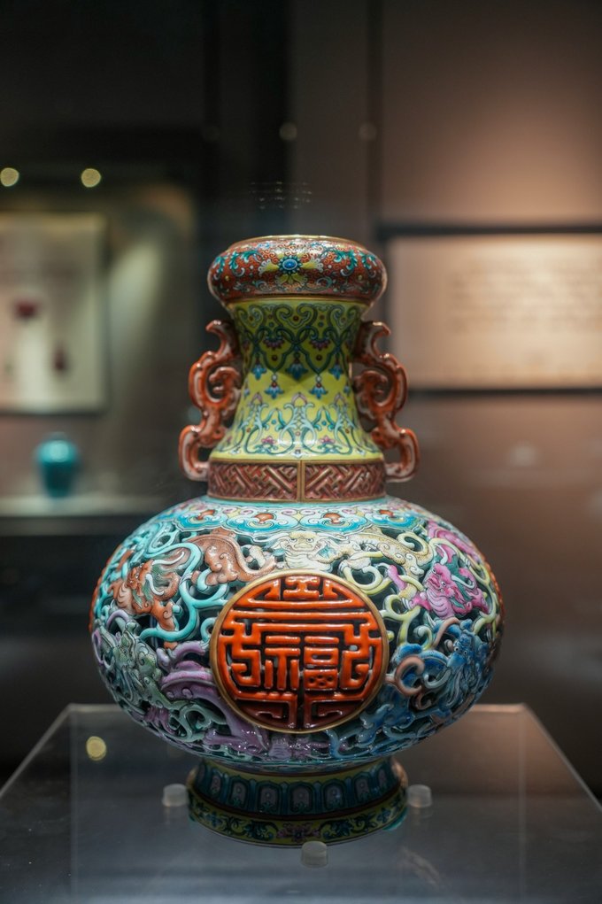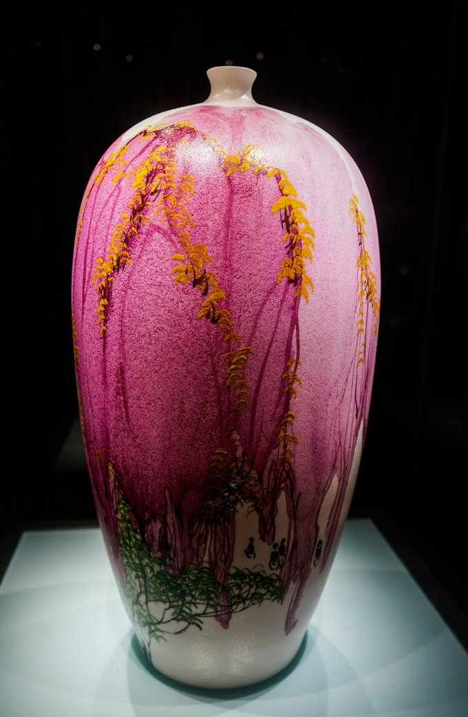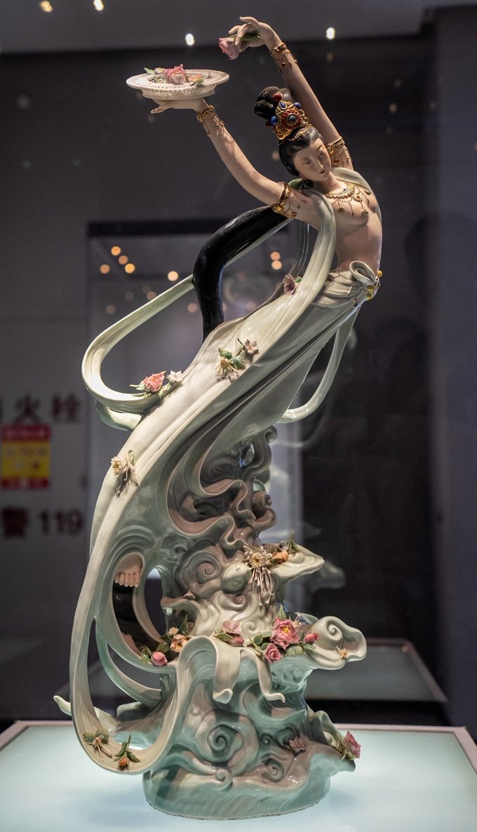 展馆内收藏的陶瓷作品多达2万件左右,仅国家珍贵文物就超过500件。 整座博物馆建筑共7层,设多个展厅,展示不同朝代的陶瓷作品和陶瓷文化,流线形的建筑设计非常大气。一般都是从第一层往上一层层参观,我选择直接到顶层,逐层往下回溯参观。
