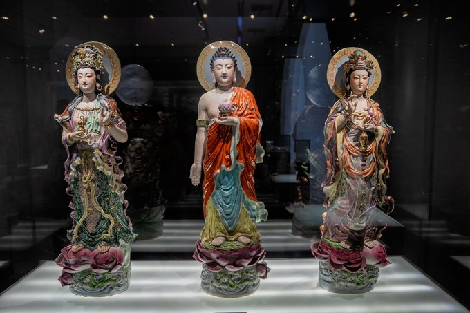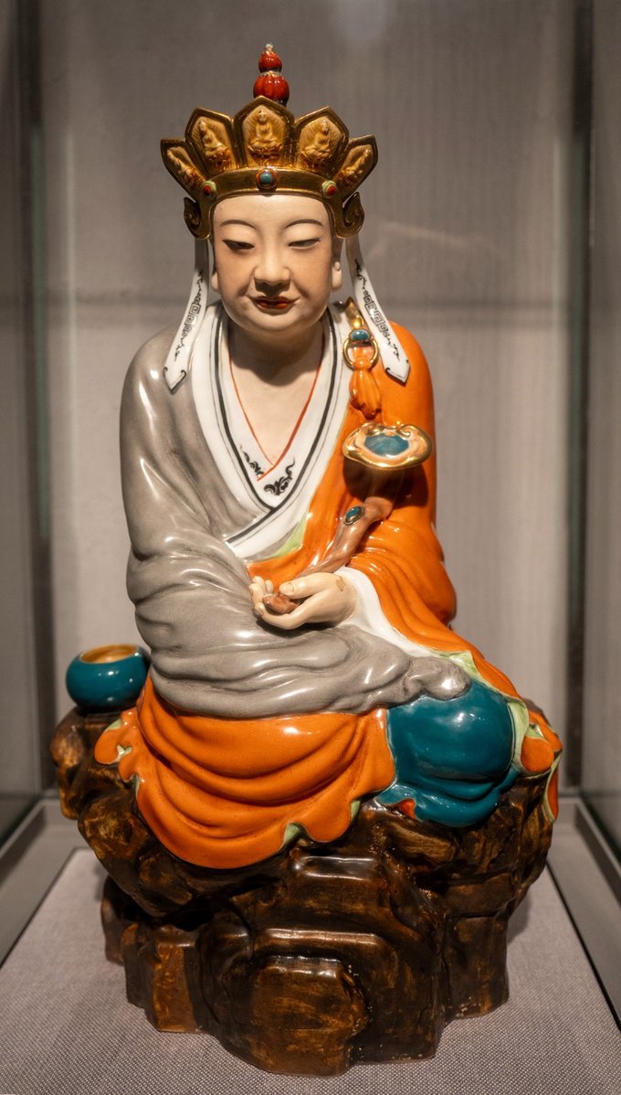 必打卡-无语佛 位于6楼常设展厅,另一个名称叫沉思罗汉,是瓷器艺术大师曾龙升所作《釉下加彩十八罗汉塑像》中的一件,只是看一看不需要排队,拍照要排队,大多数时间都要排10分钟以上,节假日排队时间更长。