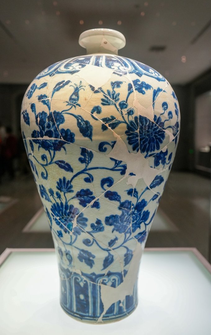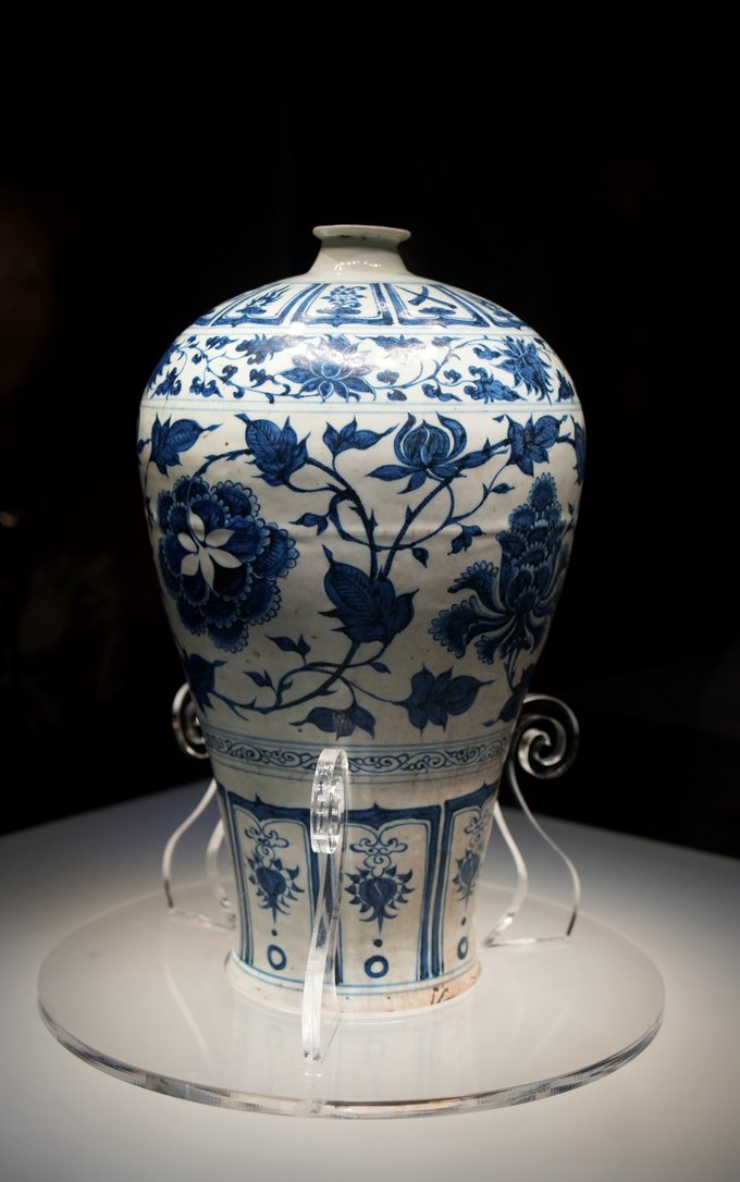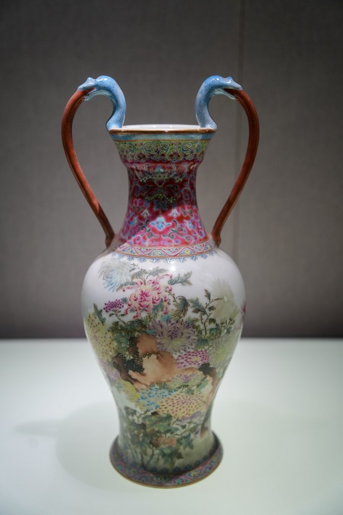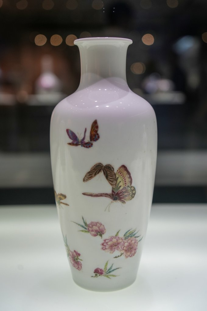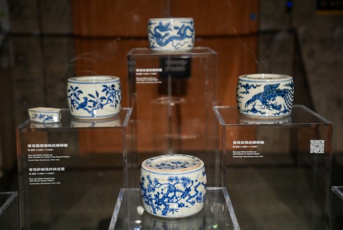 👍经典文物 宋代的影青釉瓜棱盖合、元代的青花牡丹纹梅瓶、明代的青花葡萄纹菱口盘、清代洋红地洋彩万国来朝图瓷尊等。