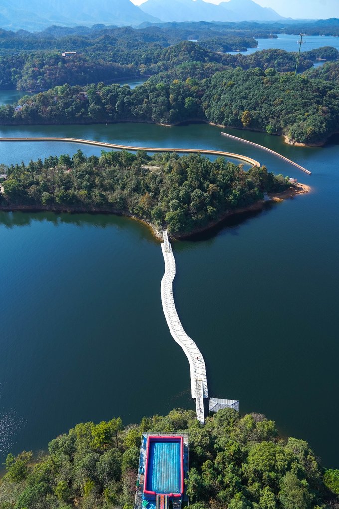 金龙桥:金色的金龙桥蜿蜒地架在西海之上,天气好的时候,金龙桥金光灿灿发出金光,在蓝色的西海上尤为耀眼。