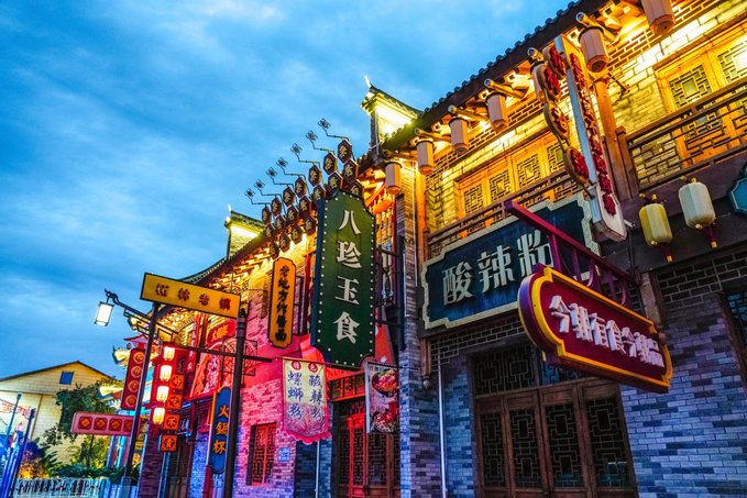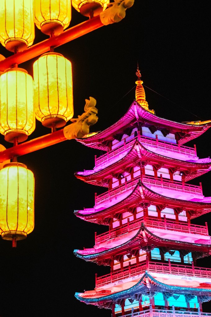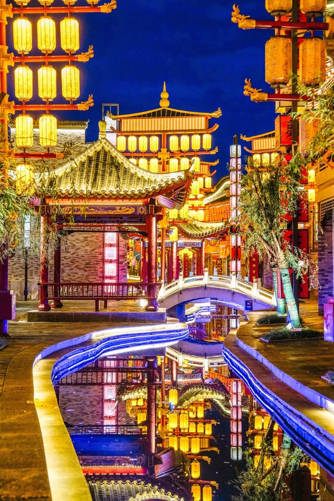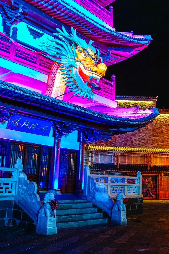 白天和夜晚是两种不同的风格,我更喜欢入夜后的古镇,灯光璀璨给人感觉特别热闹,而且很多特色活动都会在晚上展开~伴随着典雅或欢快的音乐,沉浸式感受七彩灯光带来的震撼之感绚丽的灯火犹如璀璨星光,还以为穿越回到了大唐梦境。