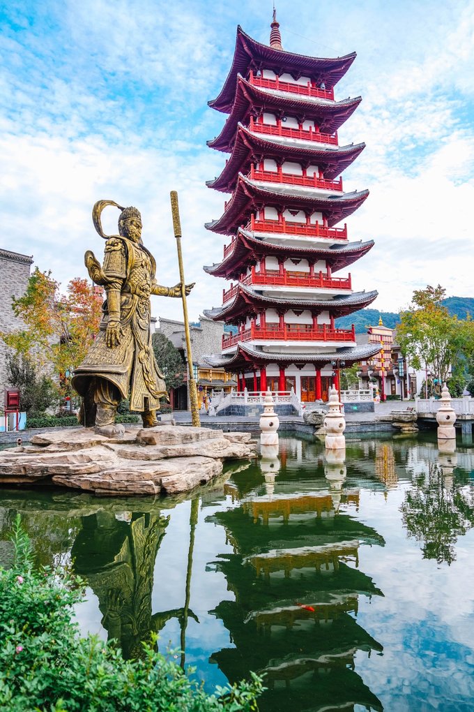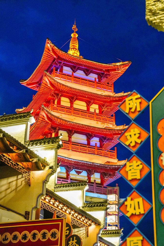 宝塔的入门口上一条金龙,以威武凌烈的姿态迎接八方来客,踏着青石板路,似乎在低语着昔日的繁华