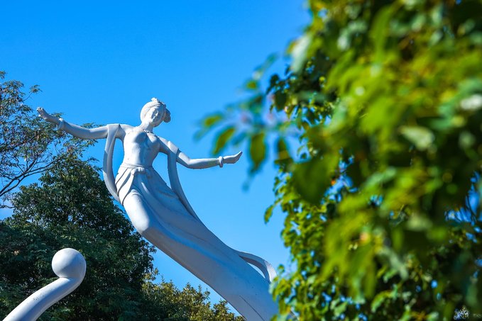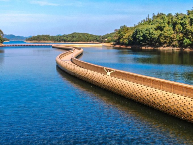 冬日如琴湖碧波荡漾,从高空看它形如提琴。阳光照射下的湖面泛出波光粼粼的金光。中间还有休闲的亭子,漫步在湖边晒着暖阳可真是惬意十足。