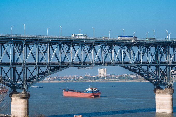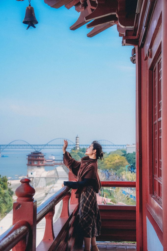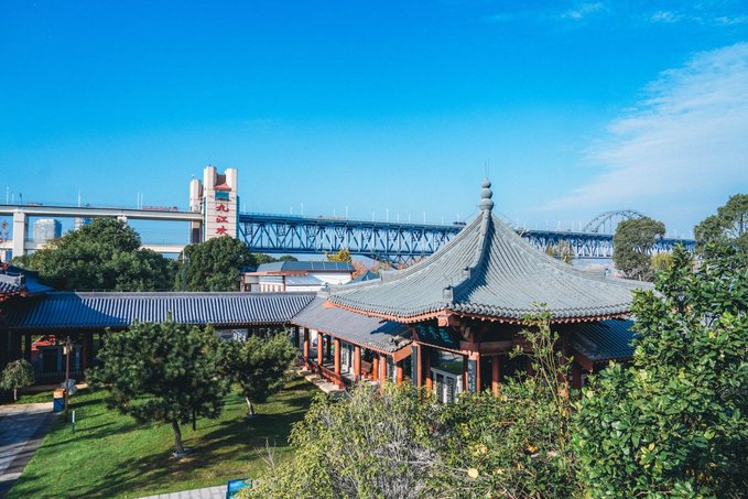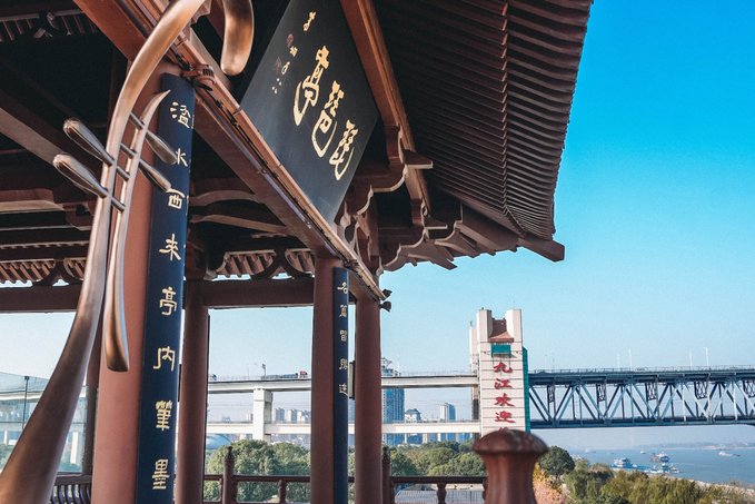 登上亭子能看到九江缓缓而流,船只也在自由来往。车水马龙的九江大桥,古今结合给人一种穿越之感。