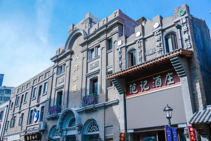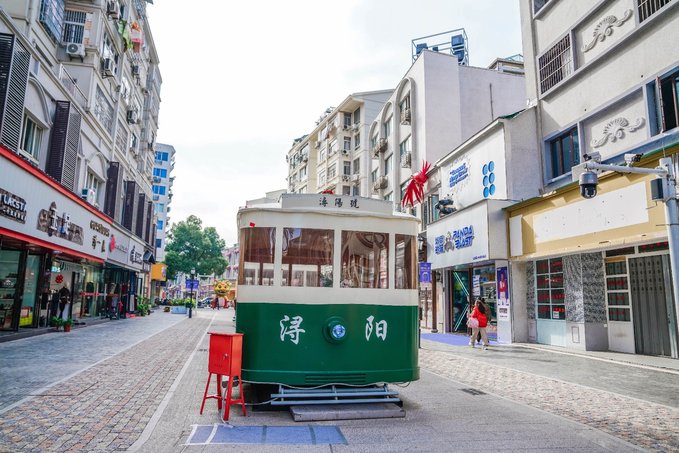 步入文化街区内,时尚潮流感铺面而来,有许多网红打卡机位。印有九江字眼的复古铛铛火车,网红标识路牌,红色电话亭等等。街道两边商铺林立,吸引了不少年轻人来打卡拍照。