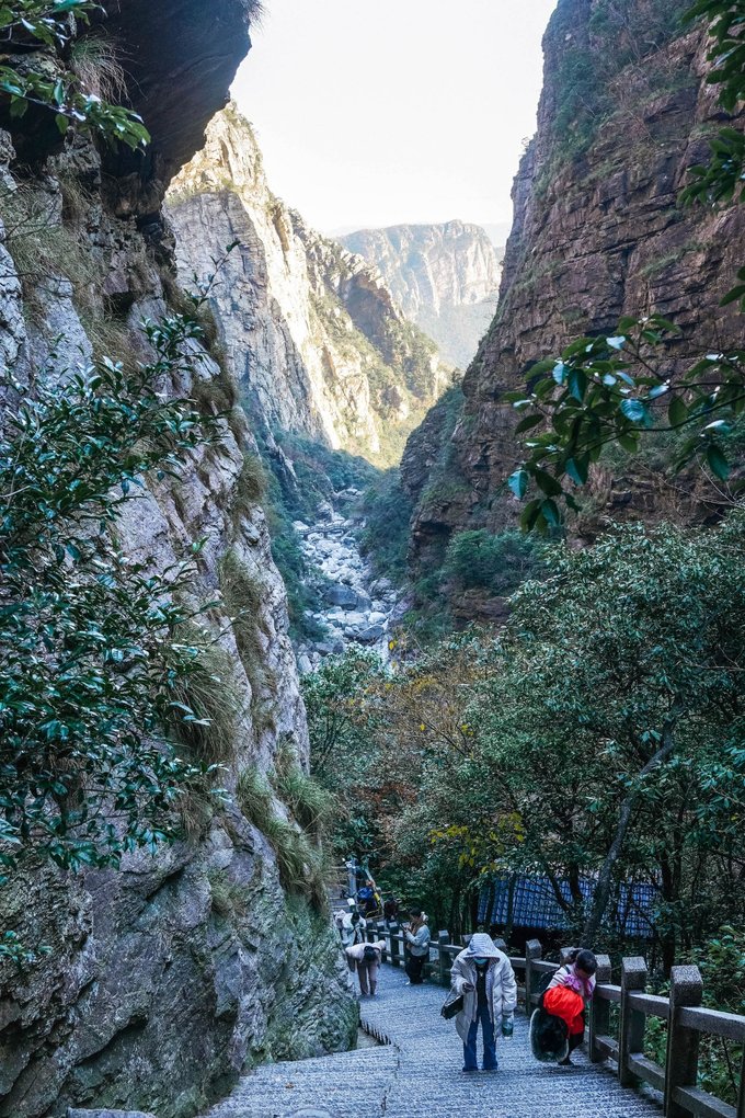 上下台阶需要2600步台阶,期间没有电梯全凭意志,想要欣赏三叠泉的美景还需要一定的体力。 先下山抬头望瀑布气势,后重新攀爬台阶原路折返。