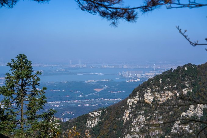 登上山顶还能欣赏到江湖两色,鄱阳湖和长江的交汇处,浑浊的长江水与清澈的鄱阳湖水有明显分割线,形成壮观奇妙的泾渭图