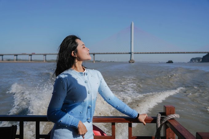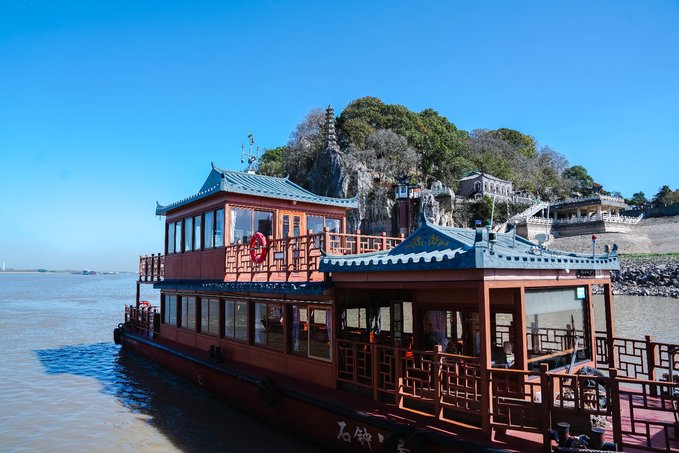 到达鞋山岛的方式可以选择乘坐游轮,画舫造型的游轮船出发,大约需要1小时的时间就可以登岛。 期间我们经过湖面,还有穿过大桥,任由江面呼呼的风吹来,冬天别有一番氛围