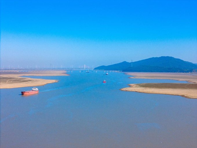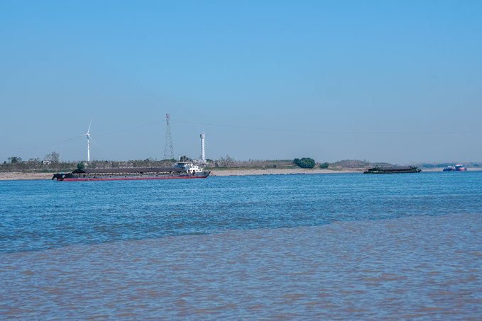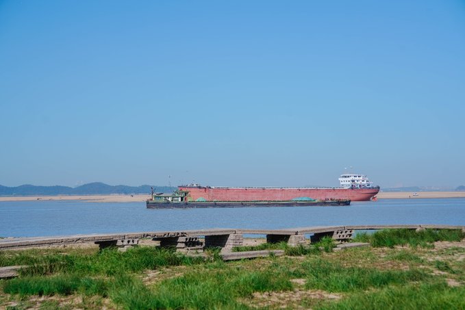 回程时我们还能遇见长江和鄱阳湖交汇处,很明显的分界线,如果幸运的话还会遇到保护动物江豚 那天天气很好,江豚靠近我们的游船跃出水面。
