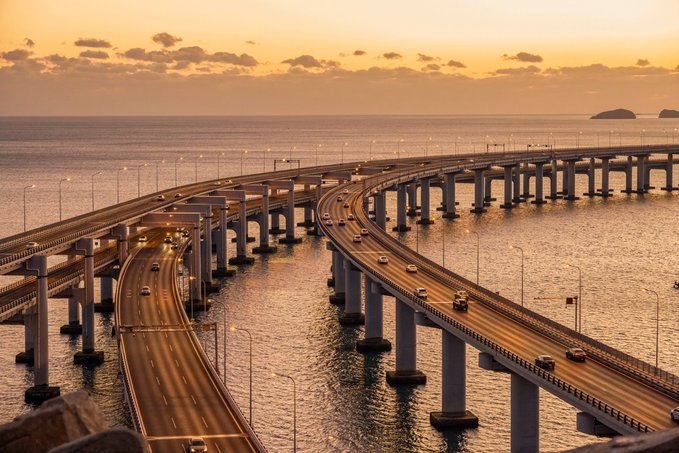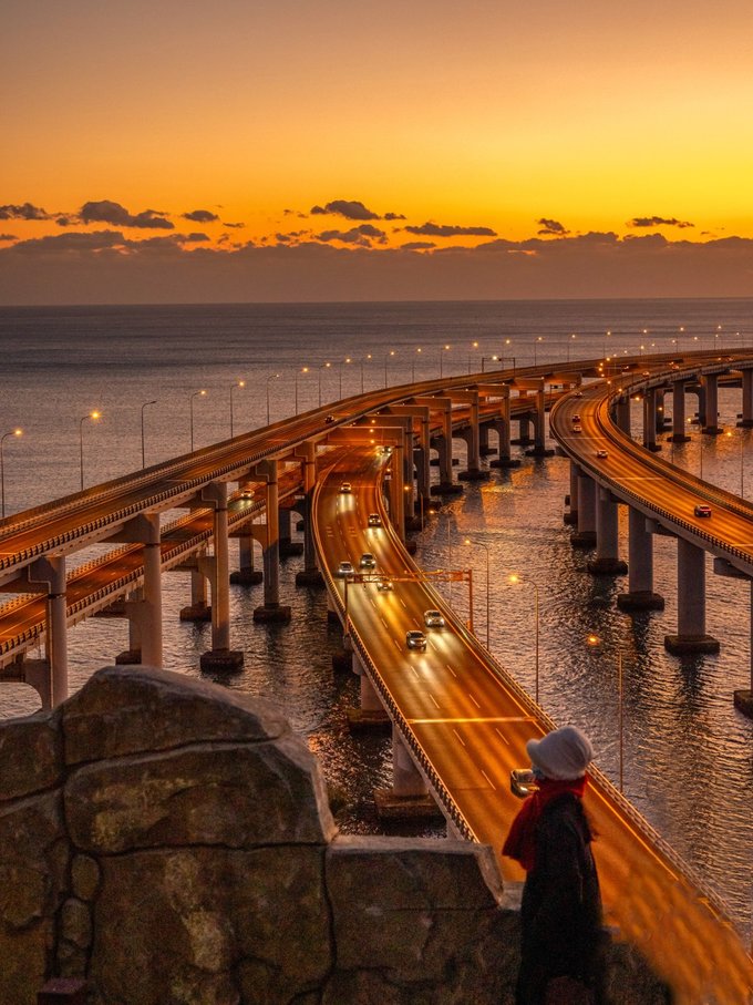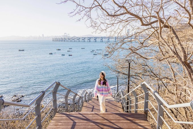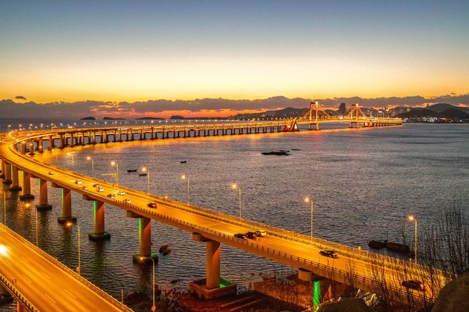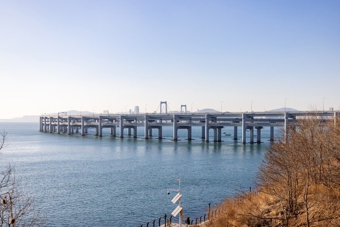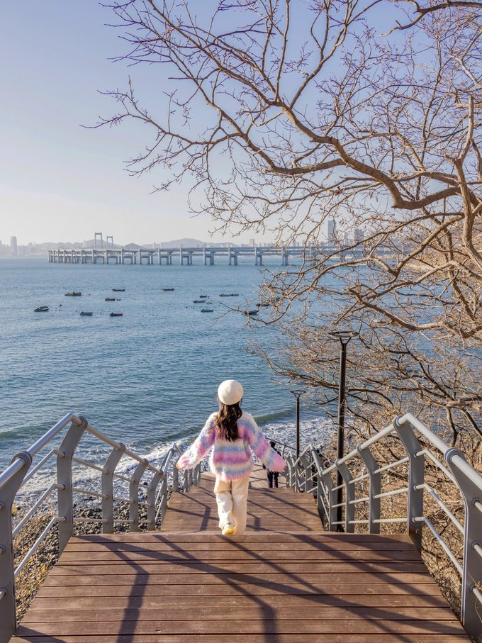 一定要看一次跨海大桥的日落,在这里可以看到两条大桥的交汇 可以看到橘黄色的夕阳洒在海边上 渐渐的海变成了蔚蓝色、湛蓝色…… 突然之间 桥上的路灯打开了 橘黄色再一次蔓延到马路的柏油路面上 整个城市宛如“爱乐之城”般浪漫 。观赏时间:按照日落时间前半小时到达!目前大约在5点,太阳落山后等到路灯亮起来,蓝调时刻和橘黄色交织,这是属于大连的爱乐之城时刻。导航: 森林动物园南门公交站或大连森林动物园,到达后,可以问一下,沿着木栈道入口走五分钟就能到观看点!