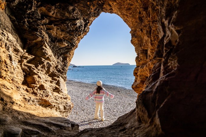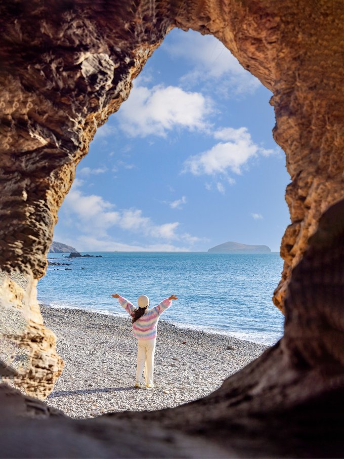 通往沙滩的山洞银沙滩附近还有一处鲜为人知的秘境,神秘又充满故事感。走进山洞一股凉爽的空气迎面扑来,洞内石壁上的洞可以拍摄,依稀可见海水冲刷的历史痕迹,每一处裂缝,每一块石头,都在诉说着过往的传奇。