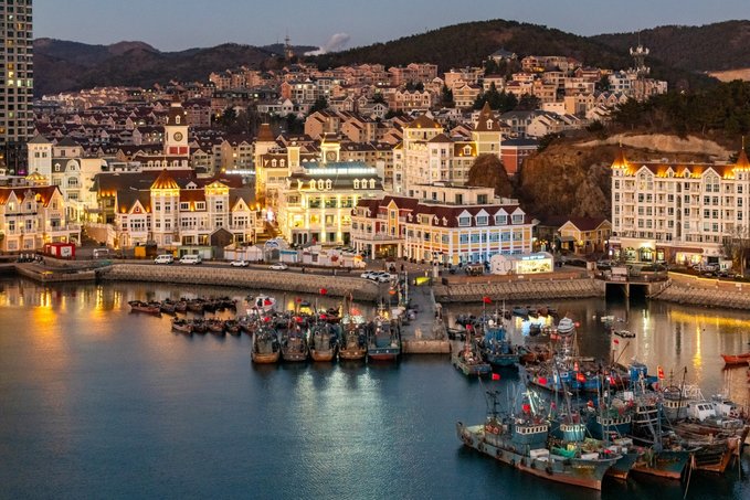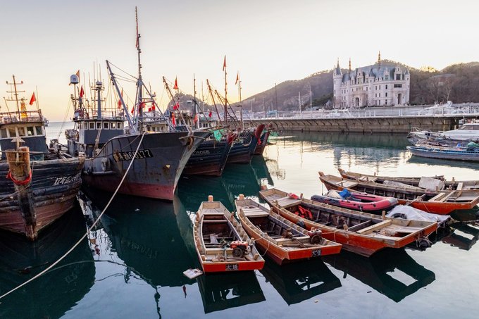 谁在说大连没有地标和记忆点,渔人码头就是大连的城市名片!午后的阳光洒在鳞次栉比的欧式建筑上,让人梦回意大利,是大连版的五渔村。 渔人码头位于老虎滩海洋公园东侧,山海相依,北临滨海路,南望黄海,西侧和东南角是沙滩,南侧一条长长的栈桥延伸至海中,渔人码头始建于1930年,最初只是一个小渔村,如今码头依然在使用,岸边是风格浓郁的欧式建筑,码头上停泊着成群的渔船,船身上带着风浪与海水侵蚀的痕迹,这里被称为大连市区最后的渔港,每到整点,渔人码头的大钟会响起,时而传来机油的味道,以及发动机轰鸣的声响。阳光将星星点点洒在海面,像是童话世界。 开海期17:00-19:00会有很多捕鱼归来的渔船,可以直接买海鲜 用时:1-3小时 交通:乘坐公交2/712/712路区间车至渔人码头(公交站)下车,步行可达。 门票:免费