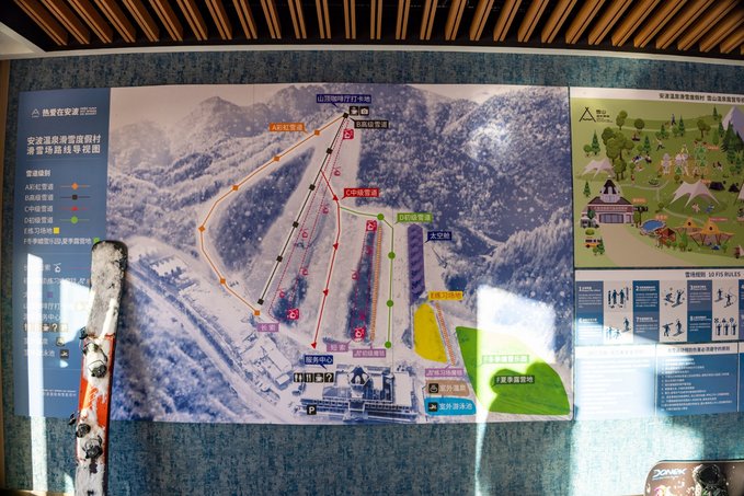 安波滑雪场雪道丰富,有中级道2条,初级道1条,长度为200米,还有一处练习场。雪道全部采用缆车和步行梯传送游客。滑雪器材都可以一站式租用,也有大型的餐厅,能同时容纳400人就餐,套餐、面条人均30左右吃到饱,性价比很高。乘缆车上山,山上还有一间咖啡屋。