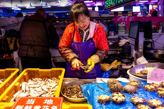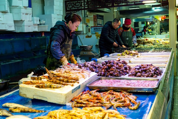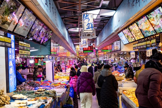 桃源市场 想要真正了解一座城市,就哎逛当地的菜市场。桃源市场,位于大连老城区,是这座城市生活气息的集中体现。这丰富的蔬菜和水果,丹东的草莓一盆一盆粉红色的俘获老夫的少女心。海鲜摊位总是人满为患,三十四个摊位一字排开,飞蟹、海胆、鲅鱼、海螺等各海鲜应有尽有,卖海鲜的小哥们手脚麻利,捞起、称重、装箱、防冰、封箱,一气呵成。记住来这里要饿着肚子来,吃海菜包子、焖子、边走边吃边逛。