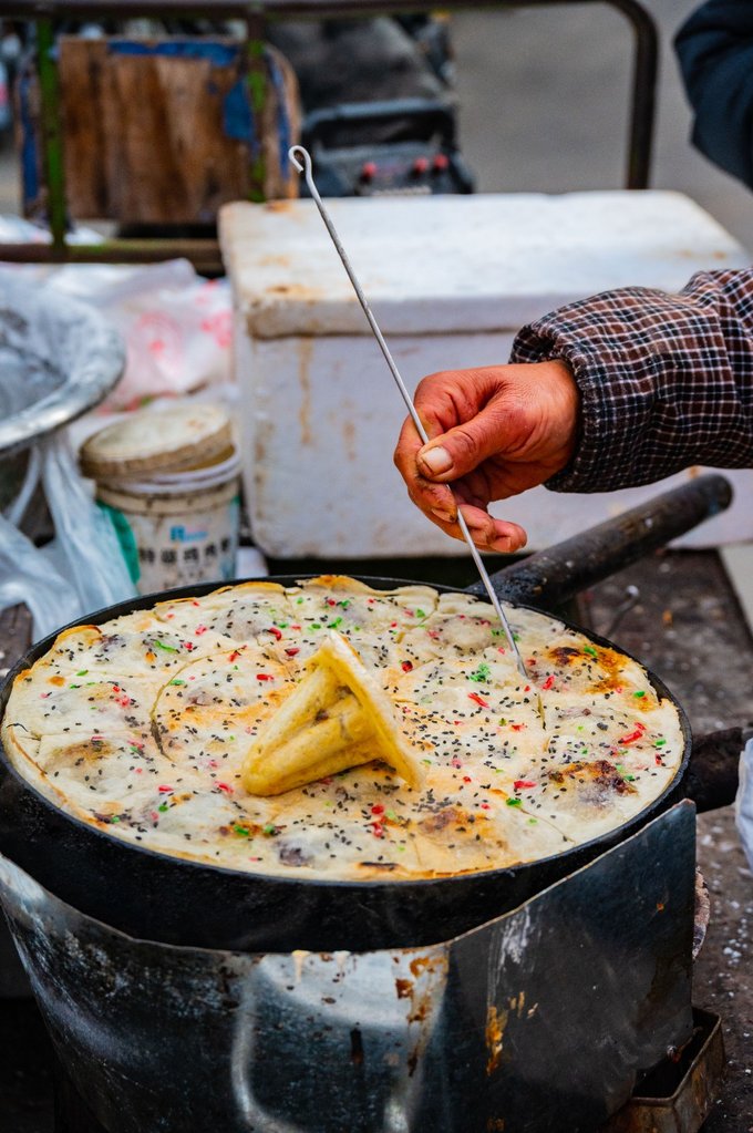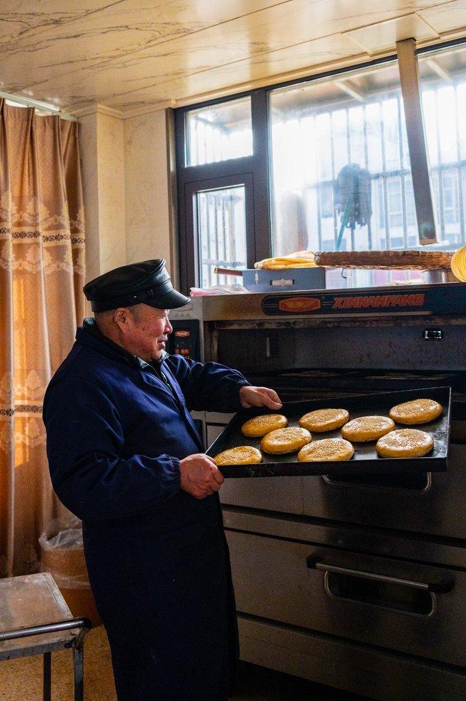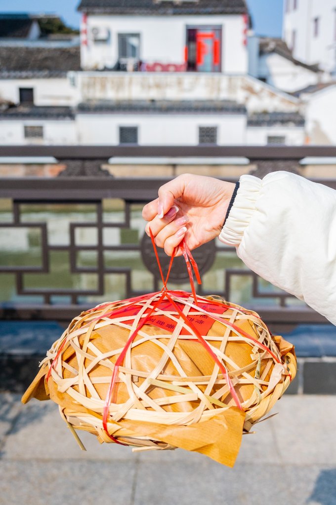 我们找到了非遗传承人开的门店,店家正在忙碌的赶制中,我拍到了想要人文照片,当然也要消费一下。这家的长泾烧饼是六块钱一块,我们买了一提一共是十个,独特的老式包装不管是自己吃还是送人都是极好的。当然由于荠菜的季节性,长泾烧饼通常只在春节期间供应,可是春节的限定美味哦。买回去如果凉了可以用微波炉一热,又是香喷喷呢!
