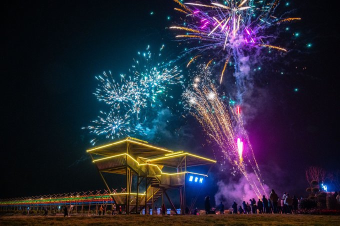 我们在蒲市村一直玩到了晚上,除了这几座场馆以外,春节期间蒲市村还弄了很多互动小游戏和民俗活动。像跳绳、煮红薯这些简单、朴实的东西,可都是我们小时候过年的回忆呀!