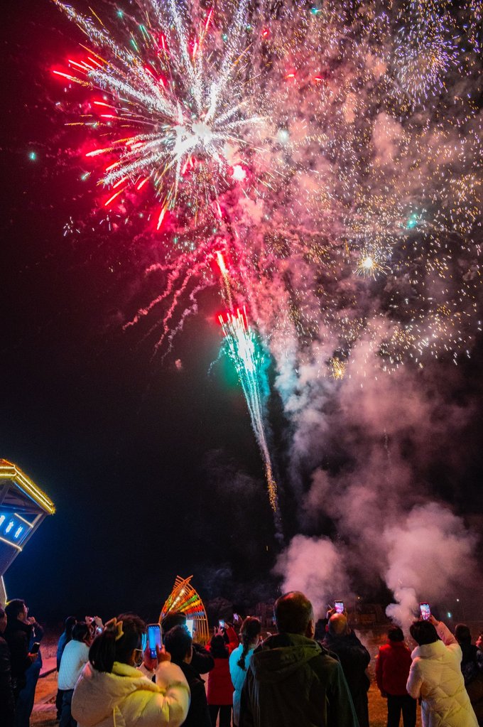 到了晚上还有燃放孔明灯以及大型烟花的活动,这些是我们选择来这里玩的一大原因。孔明灯上大家写下最多的愿景是:暴富。看烟花时每个人都拍了很多照片和视频,刷爆朋友圈,我也给媳妇拍到了一张背后是大朵烟花的人生照片呢。
