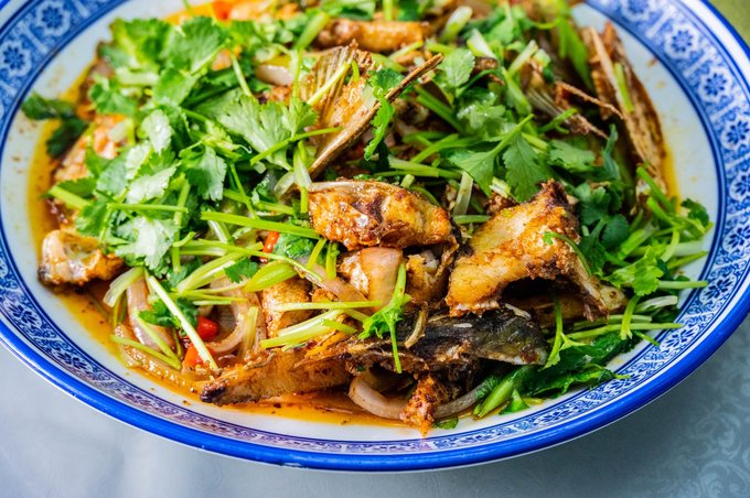 另外,我们还在镇上去到了一家叫做花径里的江南融合菜。这家的环境是一大卖点,这里除了可以吃到很多江南菜,还有一些川菜、粤菜的融合菜。特别是一道青花椒鱼片我很喜欢,辣辣的很下饭,口感格外丰富。