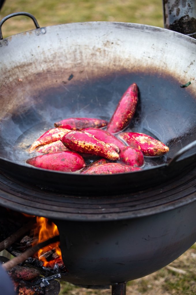 村民们相当热情好客,知道我们是外地过来的,还将自己家里种的红薯拿来煮熟,分给大家品尝。