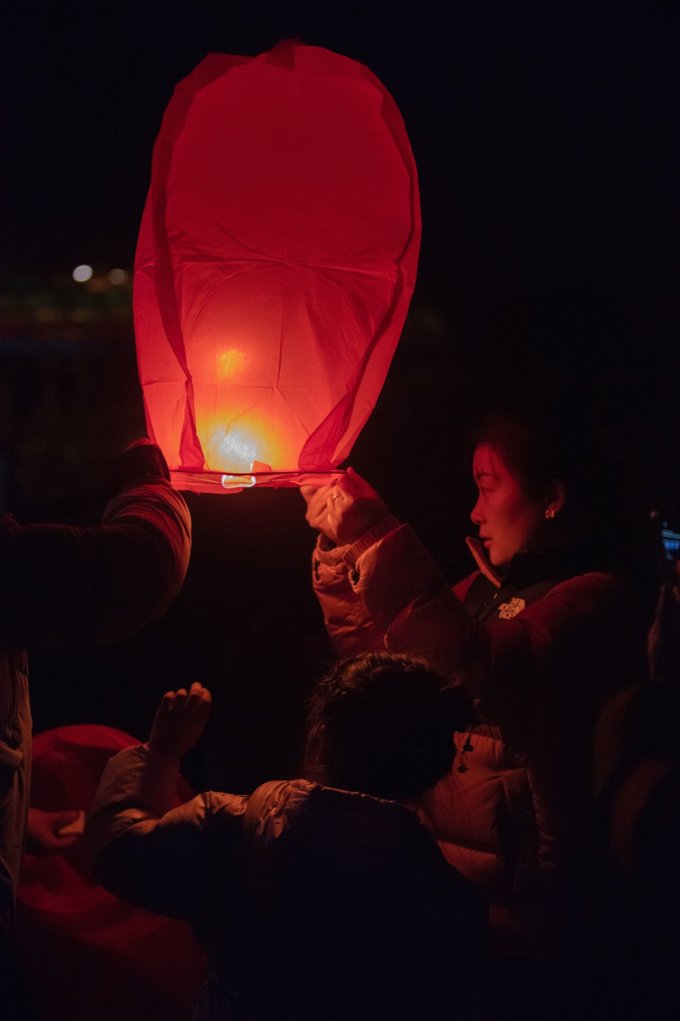 在一片开阔的空地上,孩子们聚在一起放起了孔明灯。他们每个人都在心里默默许下了愿望,希望孔明灯能够带上他们的祝福飞向远方。