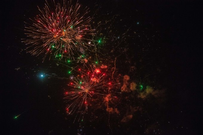 随着一声声“砰”的巨响,烟花开始绽放。第一束烟花冲向夜空,瞬间炸开,化作一片璀璨的星光,照亮了整个村庄。紧接着,更多的烟花腾空而起,五彩斑斓的光芒在夜空中交织,仿佛一场盛大的视觉盛宴。
