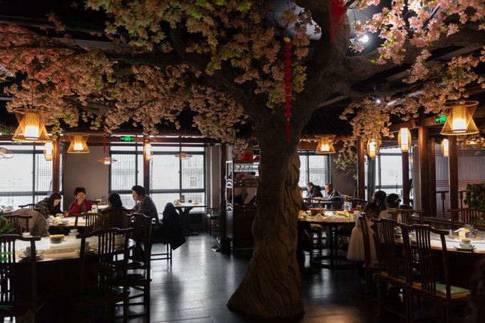 花径里真的是氛围感拉满的餐厅,餐厅的就餐环境很好,古色古香,每一桌都像是在诉说着一个故事。