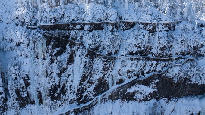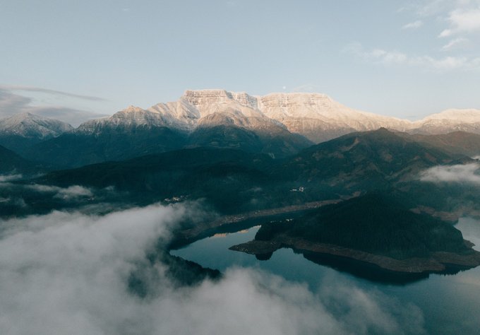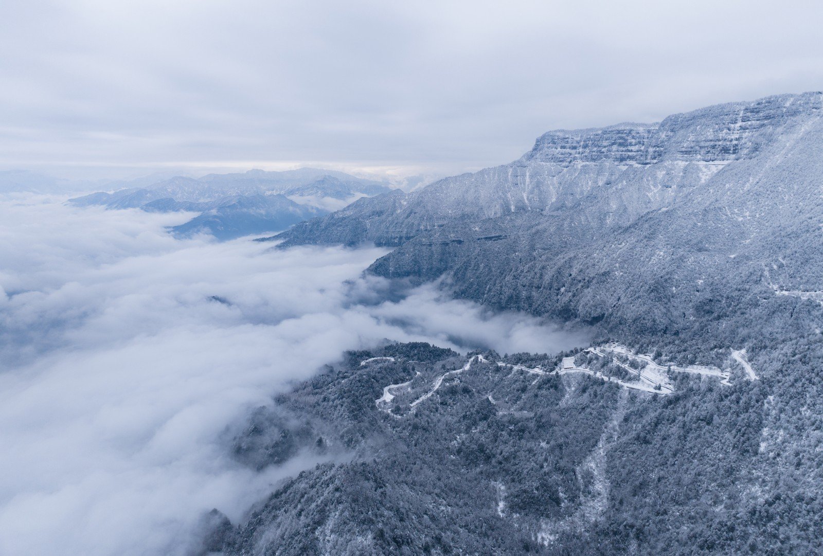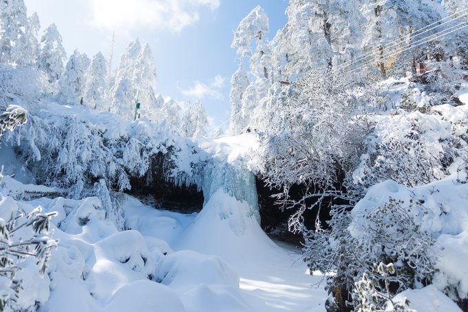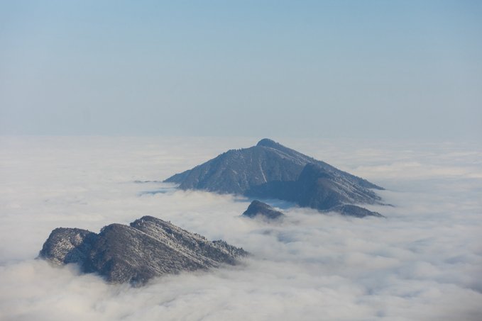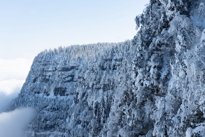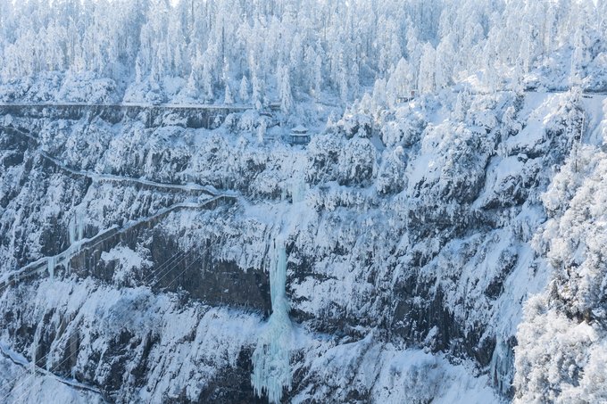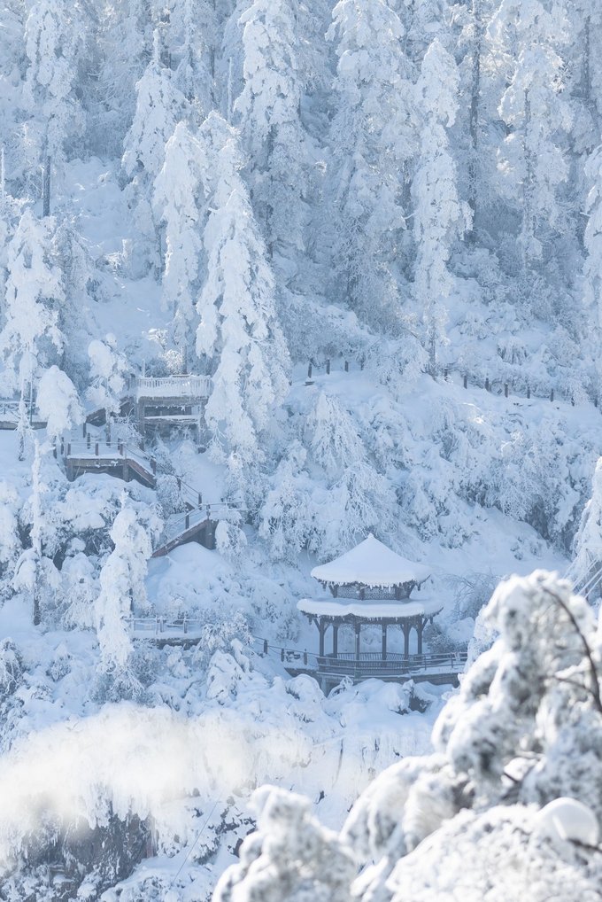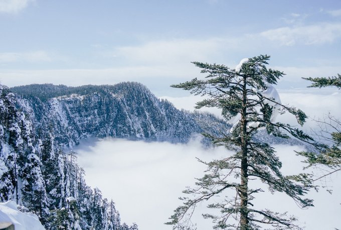 这个冬天,我已经悄悄去了两次瓦屋山,一次大雾,一次放晴。 截然不同的天气,却都没让我失望,晴雨雾霭都像老天爷给瓦屋山施下的魔法,让我远离城市,在云端之上做足了自由的深呼吸。 ▼航拍瓦屋山雪景