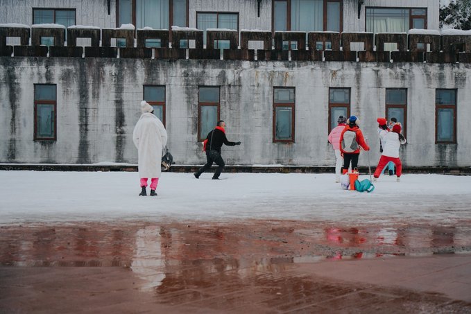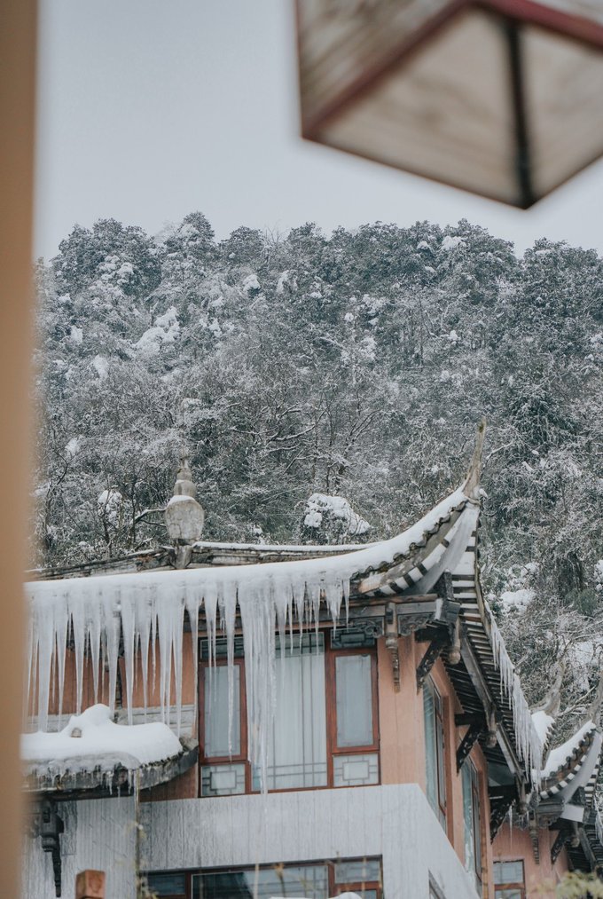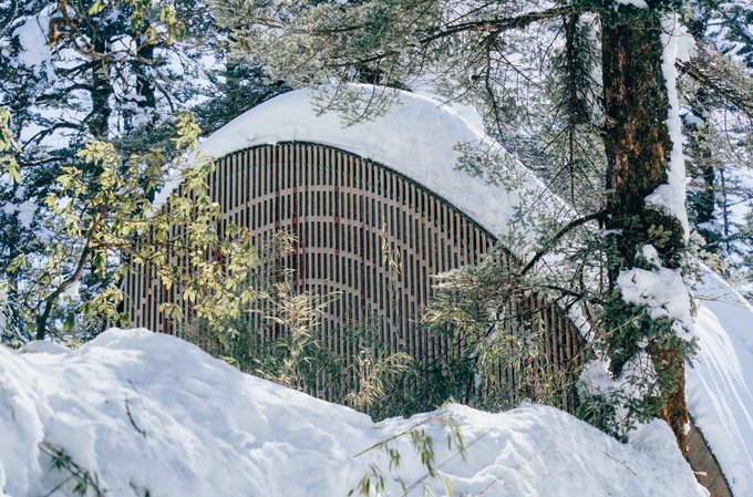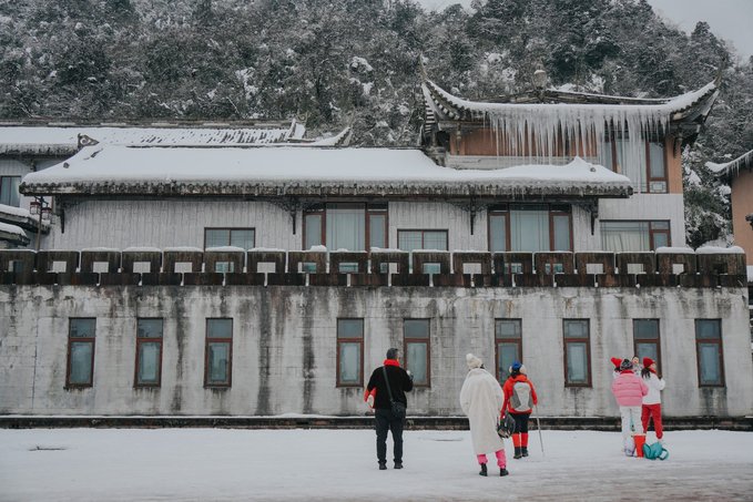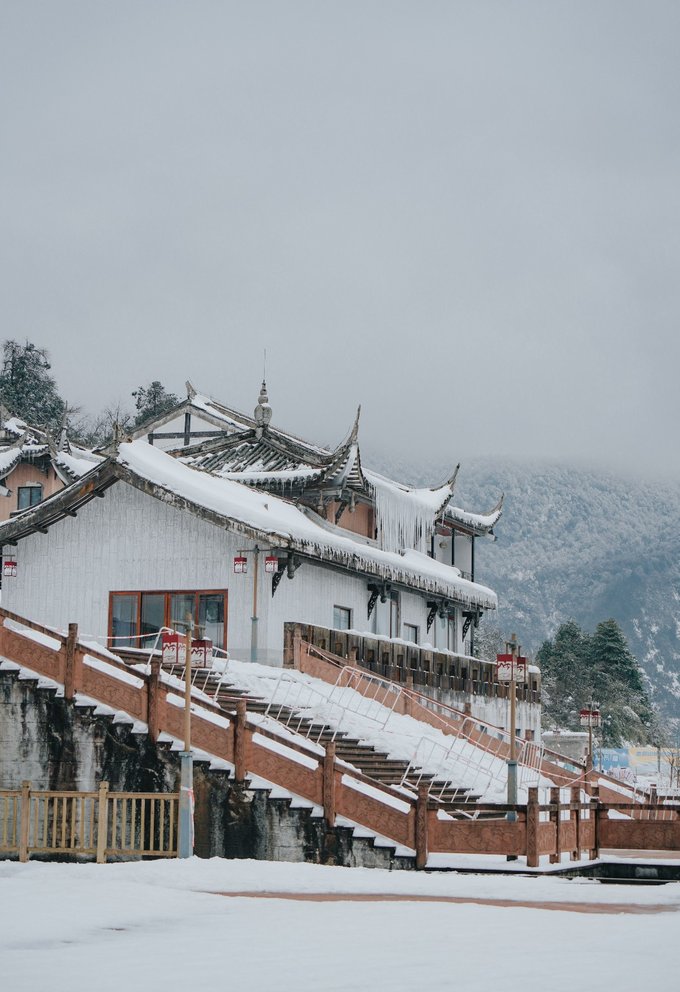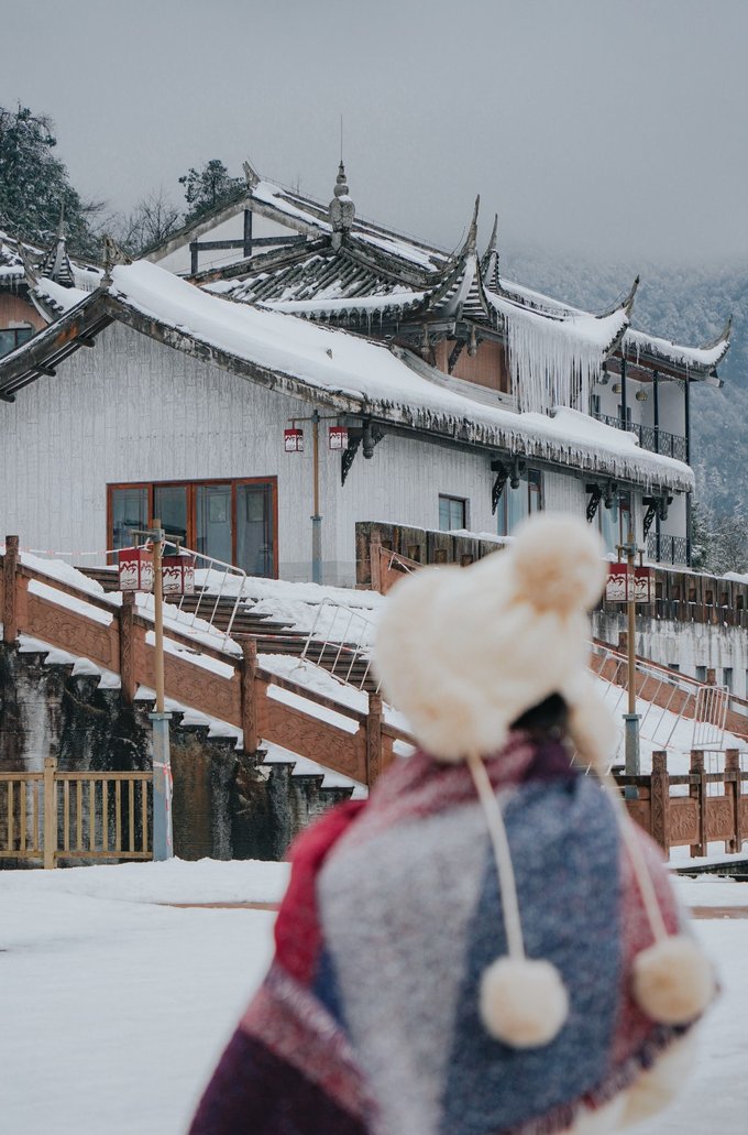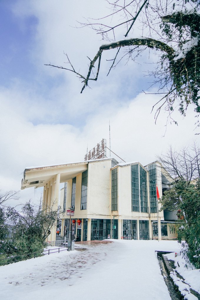 古佛坪索道的主体建筑有苏俄时期的风格,在雪中显得更为独特了:
