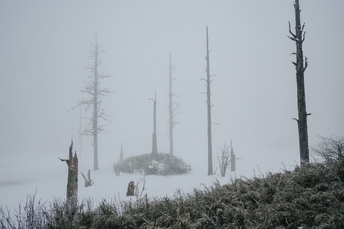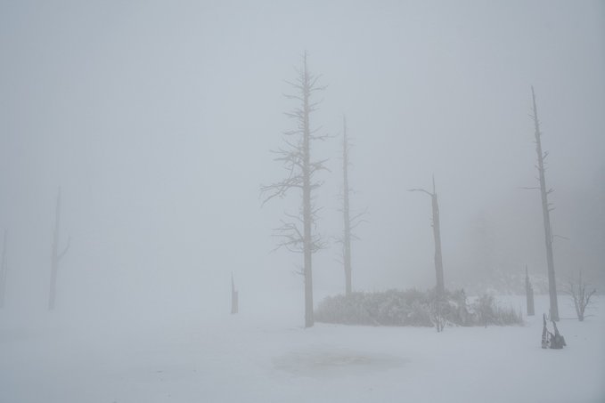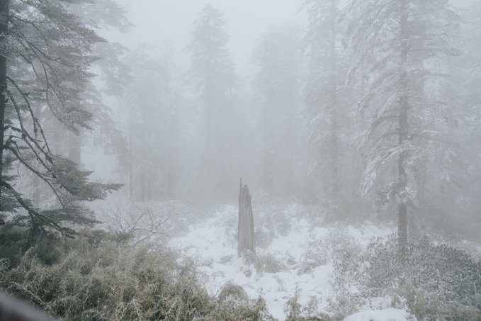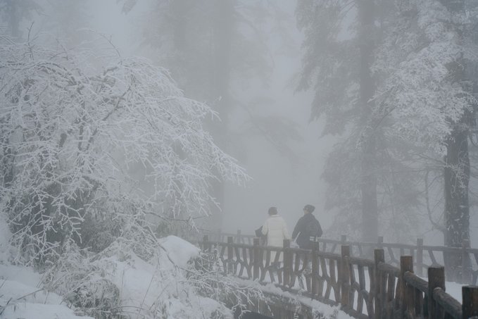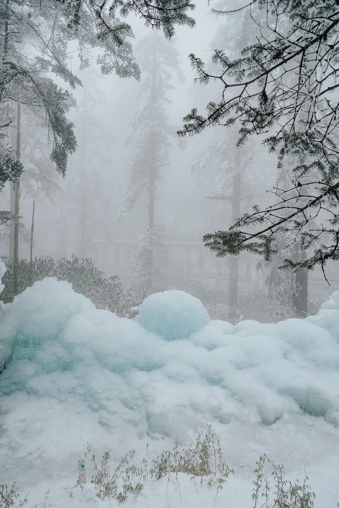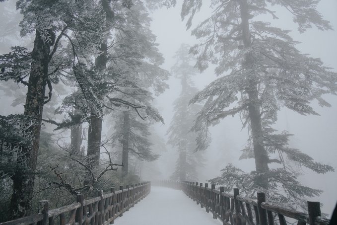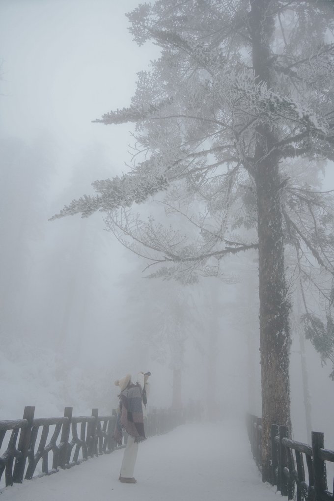如果你和我一样喜欢电影感,可别错过雾中的瓦屋山。 雾,像一个天才调色师,使瓦屋山变成流动的水墨长卷。冷杉林在雾中退成深浅不一的灰;珙桐林的光线被处理成王家卫式的青调;梭罗树在雾中只剩轮廓;鸳鸯池畔的晨雾最懂构图,总爱缠绕在枯木虬枝间描摹水墨……而此时的我,突然懂了古人所说的“山色空蒙雨亦奇”! 正因有雾,我才拍到了很多意料之外的照片: