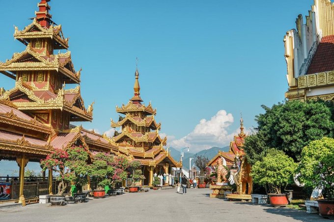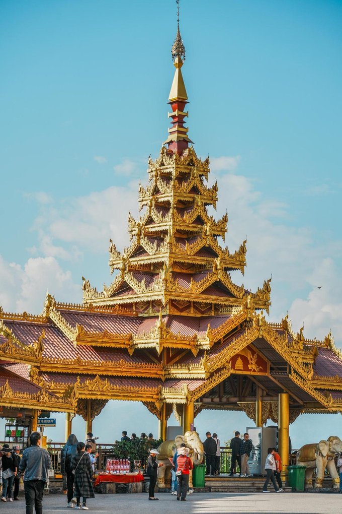 ✔芒市广场龙亭装扮 参加完采花节,可以带山花前往芒市广场的龙亭,把山花一边装扮在龙亭一边祈福。Ps:即使不是节日期间,芒市广场的建筑风格也很有特色,适合打卡拍照哦。