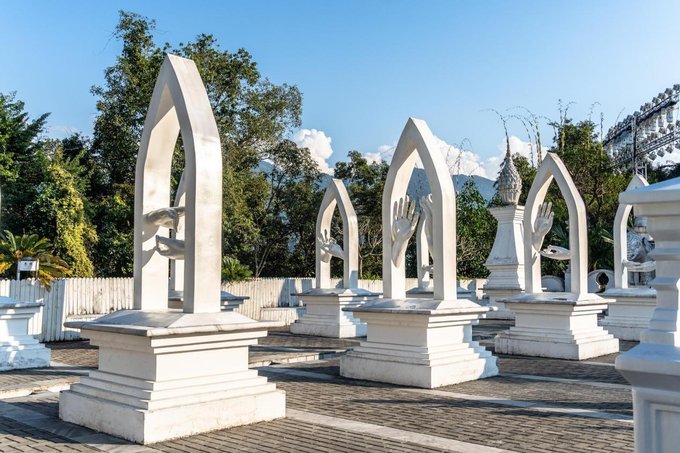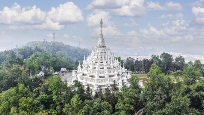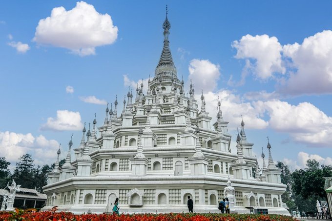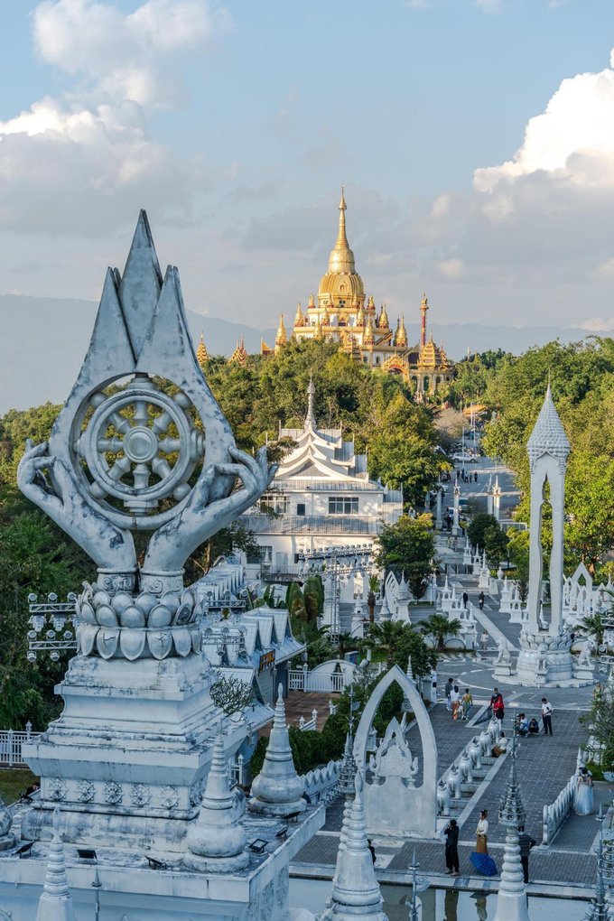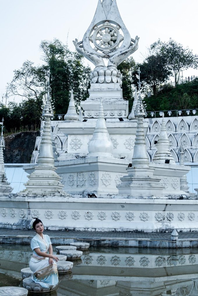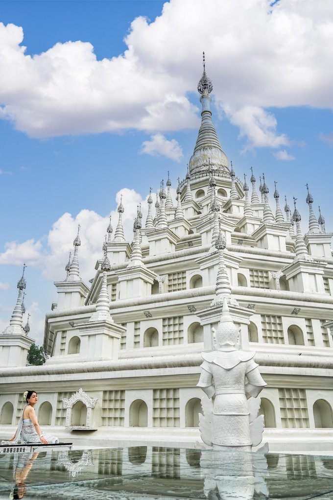 ✔勐焕银塔 与大金塔遥相呼应的勐焕银塔,洁白无瑕,宛如仙子立于翠绿山林间,如梦似幻。塔高66米,是实心塔,内部供奉万尊佛像与舍利子,又称万佛塔、八万四千塔。周边景色宜人,穿上浅色长裙拍照,出片率极高。 门票:参考价¥40 开放时间:08:30 - 21:30 (可与大金塔安排在同一天,上午游银塔,下午逛大金塔)
