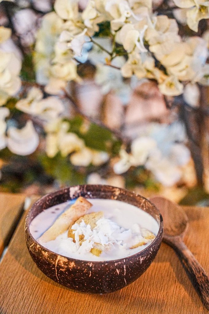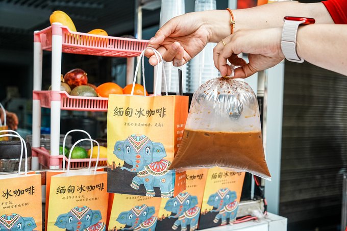 ✔泡鲁达 芒市街头常见的泡鲁达,是当地人的心头爱。香甜椰奶打底,搭配酥脆面包干、软糯西米、紫米,撒上椰丝,口感丰富,10 - 15元一杯,冰爽香甜,驱散旅途疲惫。