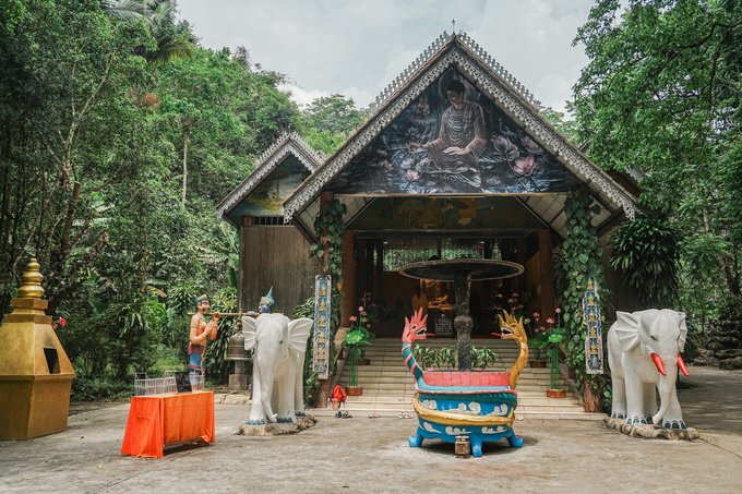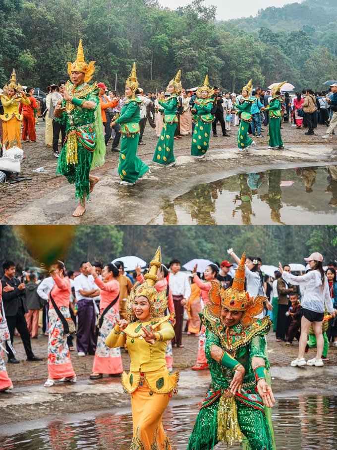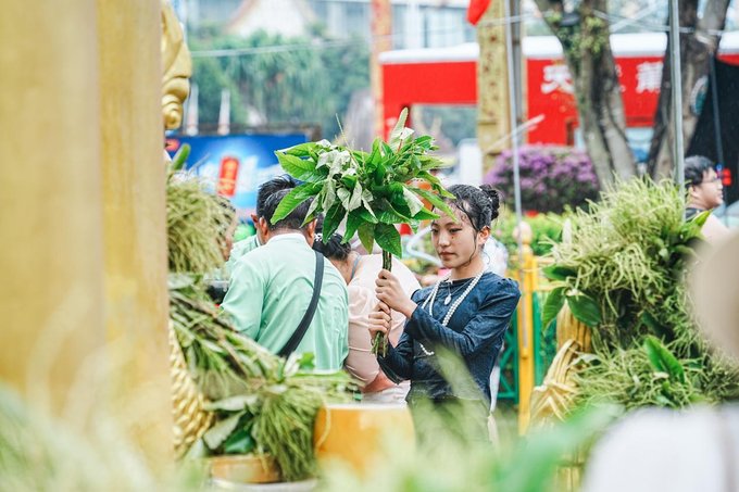 ✔风平菲洪山采花场 沷水节前一天,可以前往平菲洪山,在这里可以参与传统的采花仪式,感受傣族文化的独特魅力。玩累了还能品尝一口特色千包饭以及各式傣族美食,超级满足!