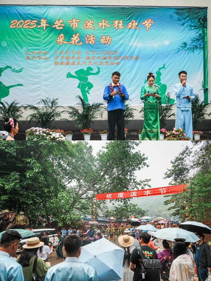 第一站:芒市 今年4.14日举行的芒市泼水节根本是把快乐泼到了我的心巴上!虽已经圆满落幕,但错过的宝子别灰心!明年一定要约上小伙伴去体验,现在就把这份超全攻略码住,明年泼水节直接封神! ✔芒市广场迎宾晚会 每年泼水节前夕,芒市广场都会举办盛大的迎宾晚会,歌舞表演、民族服饰展示,氛围感直接拉满!即使不在泼水节期间,芒市广场也经常会有各种民俗活动,晚上来逛逛,说不定能偶遇惊喜~
