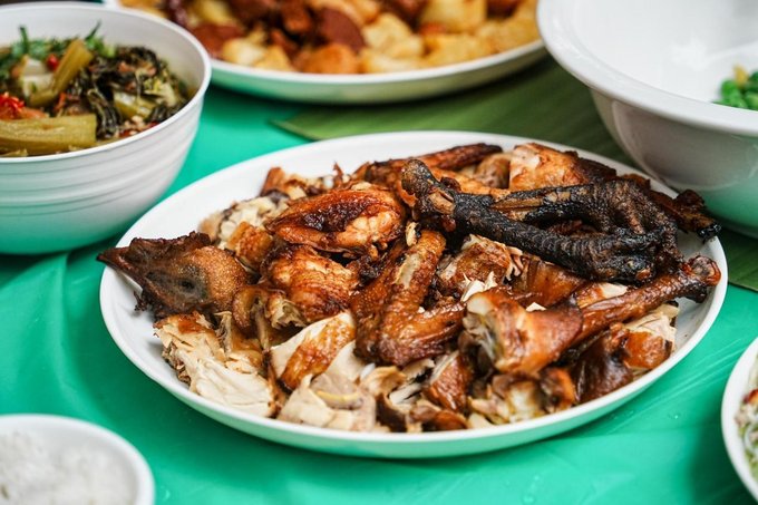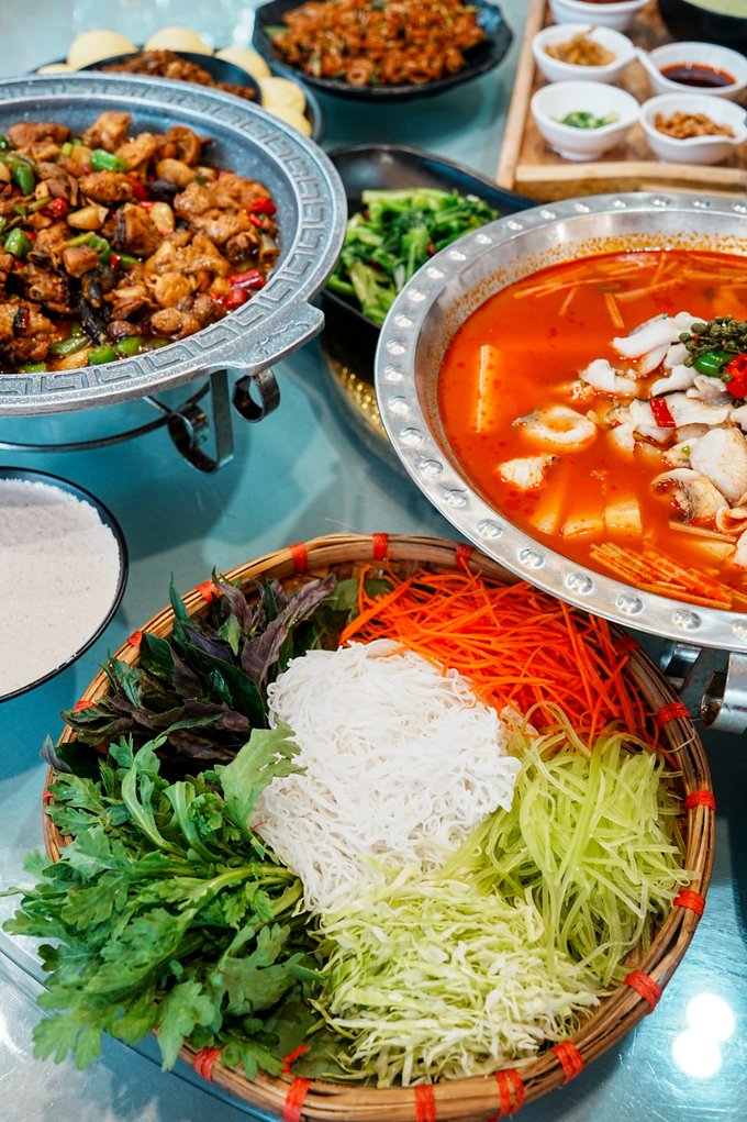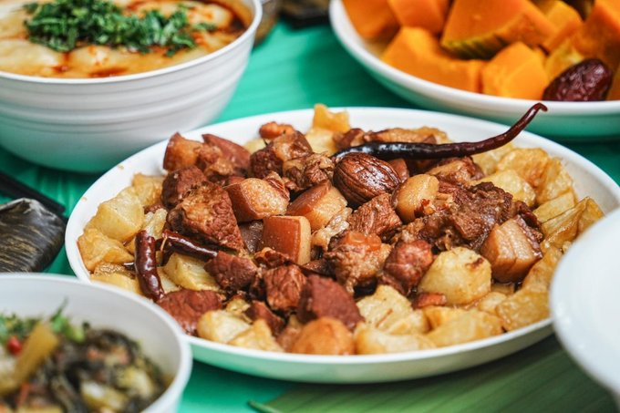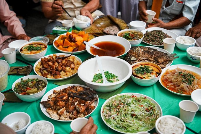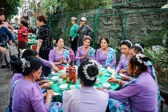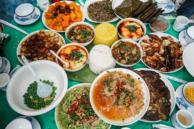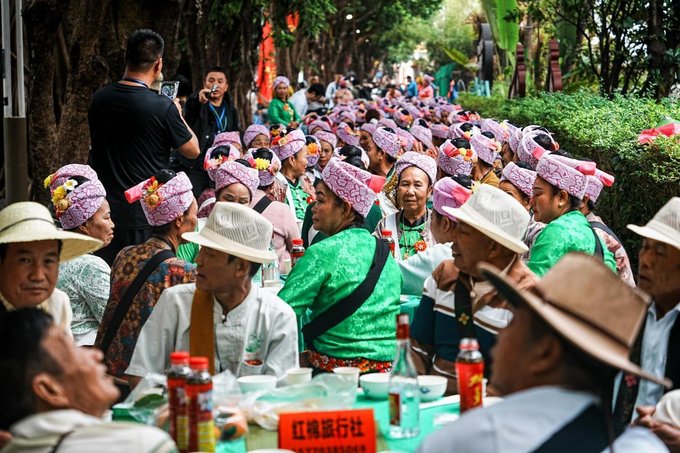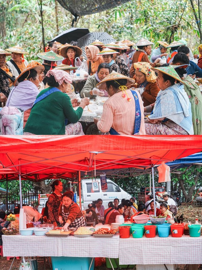 ✔菩提寺民族团结餐 不同民族的特色美食汇聚一堂,傣族的香茅草烤鱼、景颇族的鬼鸡、傈僳族的手抓饭......各种美味在舌尖绽放,一边品尝美食,一边感受各民族的团结与和谐,太治愈了!