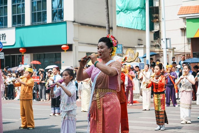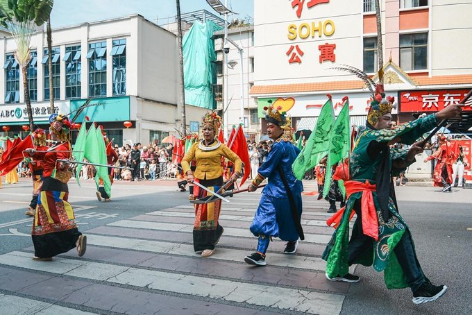 ✔传统文化巡演 泼水节可不只有泼水!中华民族优秀传统文化巡演也超精彩。傣族舞蹈、葫芦丝演奏、象脚鼓、非遗剪纸、......一场场精彩绝伦的演出,让你近距离感受中华文化的魅力。跟着巡演队伍一起穿梭在芒市街,体验傣族人们的欢欣和喜悦。