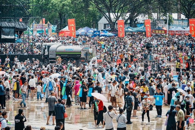 ✔共沐吉祥水·万人狂欢 泼水节重头戏来啦!!开幕式当天前往芒市广场,参加共沐吉祥水·万人狂欢,这才是泼水节的灵魂所在。上万人聚集在一起,拿着水盆、水枪,互相泼水祝福,水花四溅,笑声回荡。被泼得越湿越开心,因为每一滴水都代表着吉祥和祝福!记得穿上防水的手机袋,换上轻便的衣服,尽情享受这场泼水大战吧! 贴心小Tips 1、一定要提前订好住宿!泼水节期间房源超紧张,晚了可能就只能睡大街啦 2、准备一套换洗的衣服和毛巾,方便狂欢后及时更换。 3、做好防晒!虽然被泼水很爽,但紫外线可不会手下留情,防晒霜、遮阳帽安排起来~ 4、贵重物品尽量别带,或者做好防水措施,避免不必要的损失。